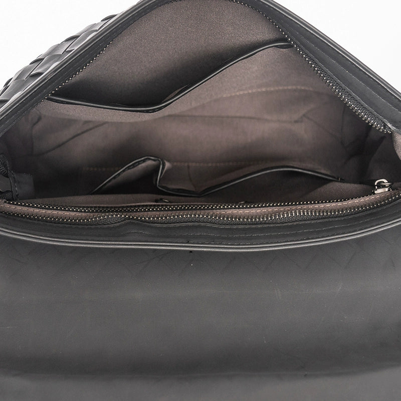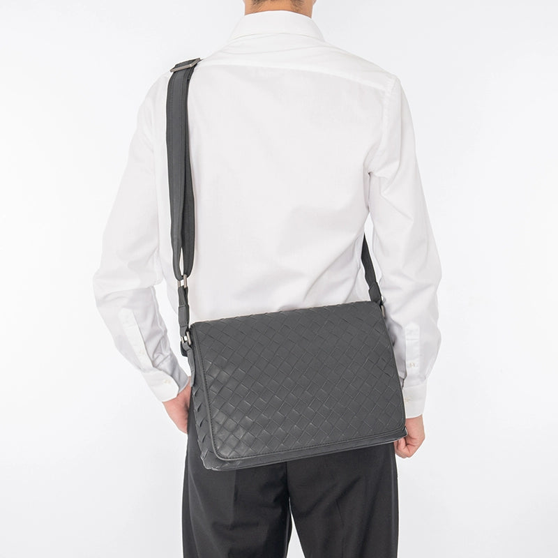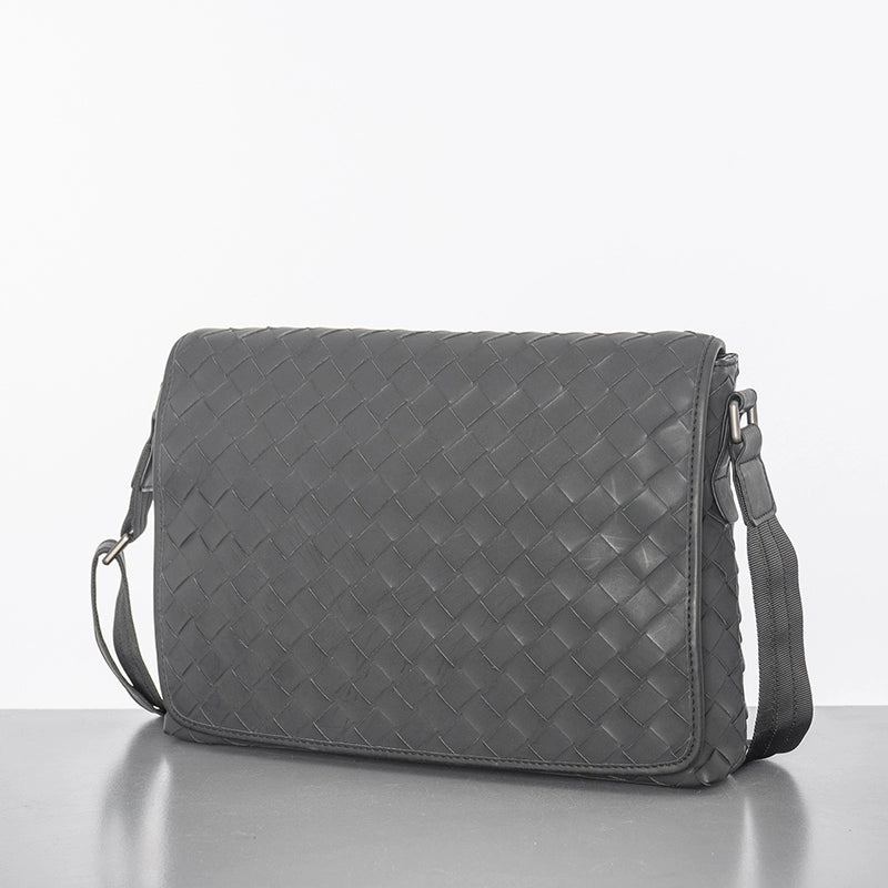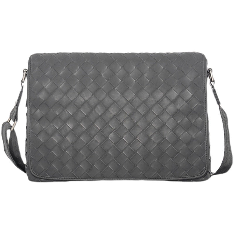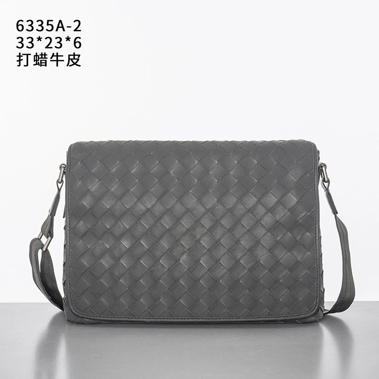 X&BV新款编织潮牌男士单肩包大容量真皮休闲横款翻盖商务斜挎包男