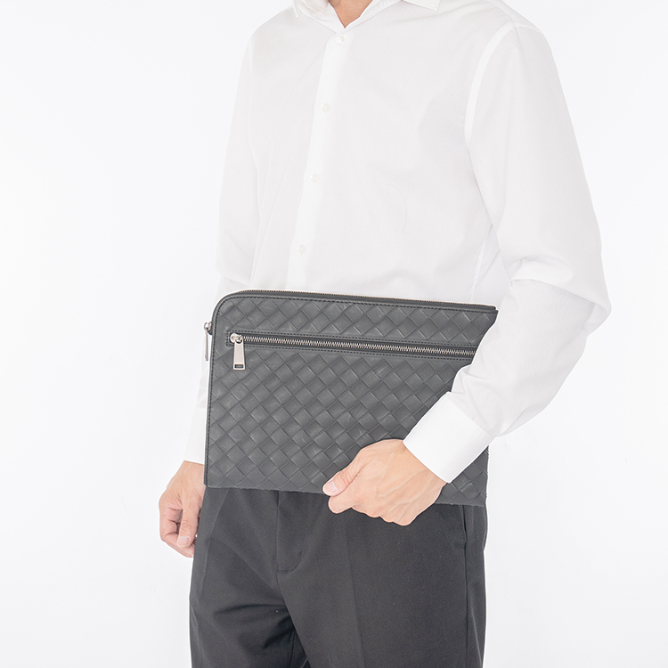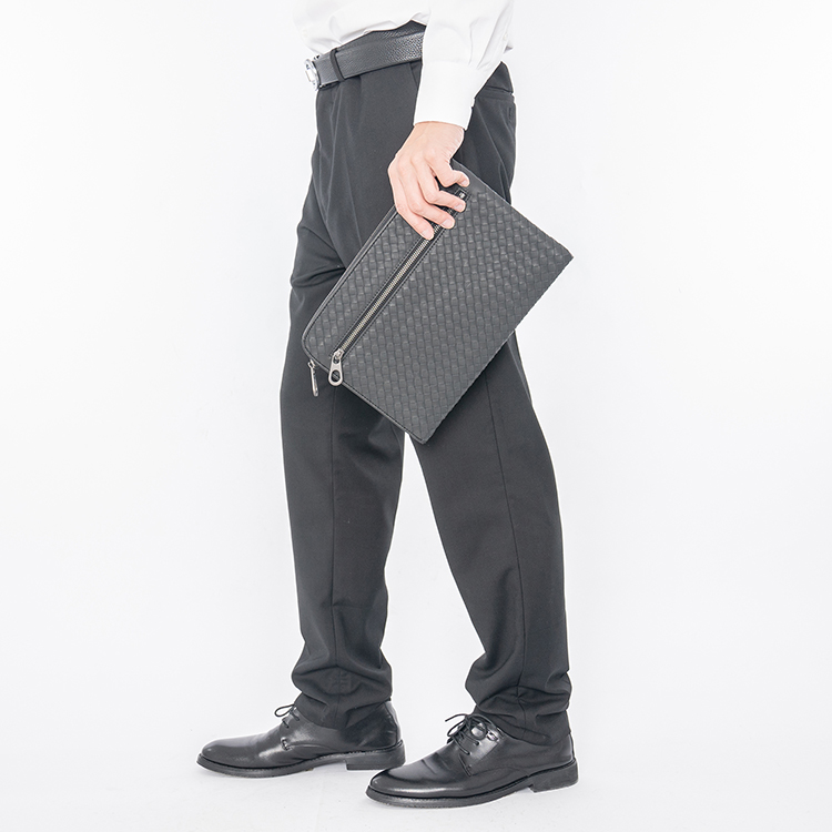X&BV潮牌新款编织手包男真皮休闲男士手拿包信封包大容量A4文件包