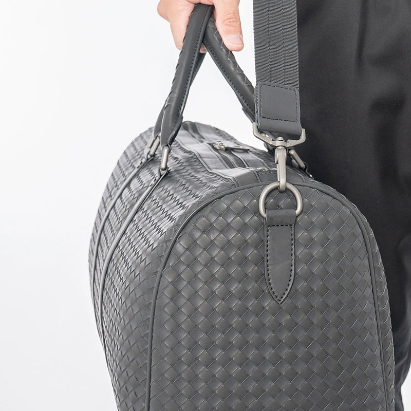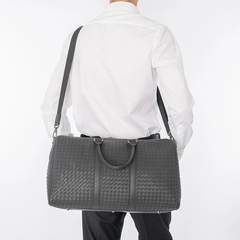 X&BV潮牌真皮男包旅行包单肩包斜挎包韩版大容量手提包背包男编织