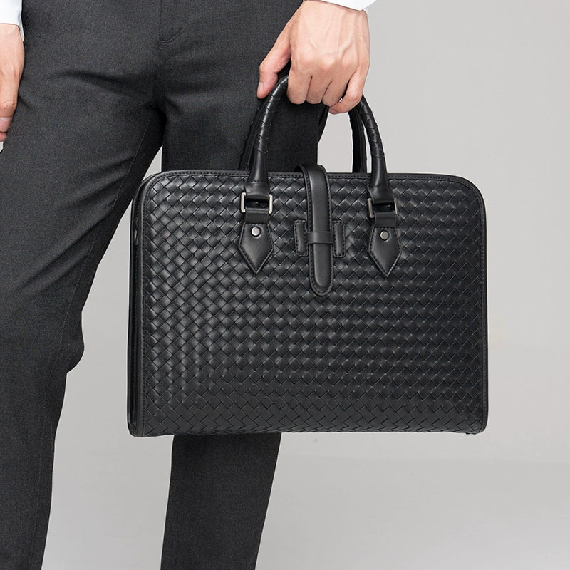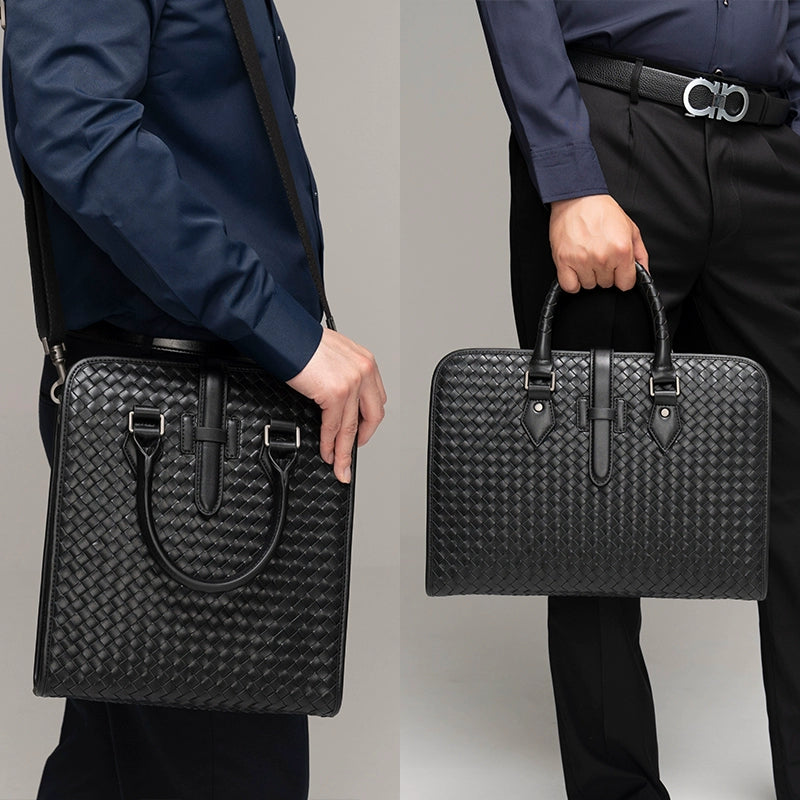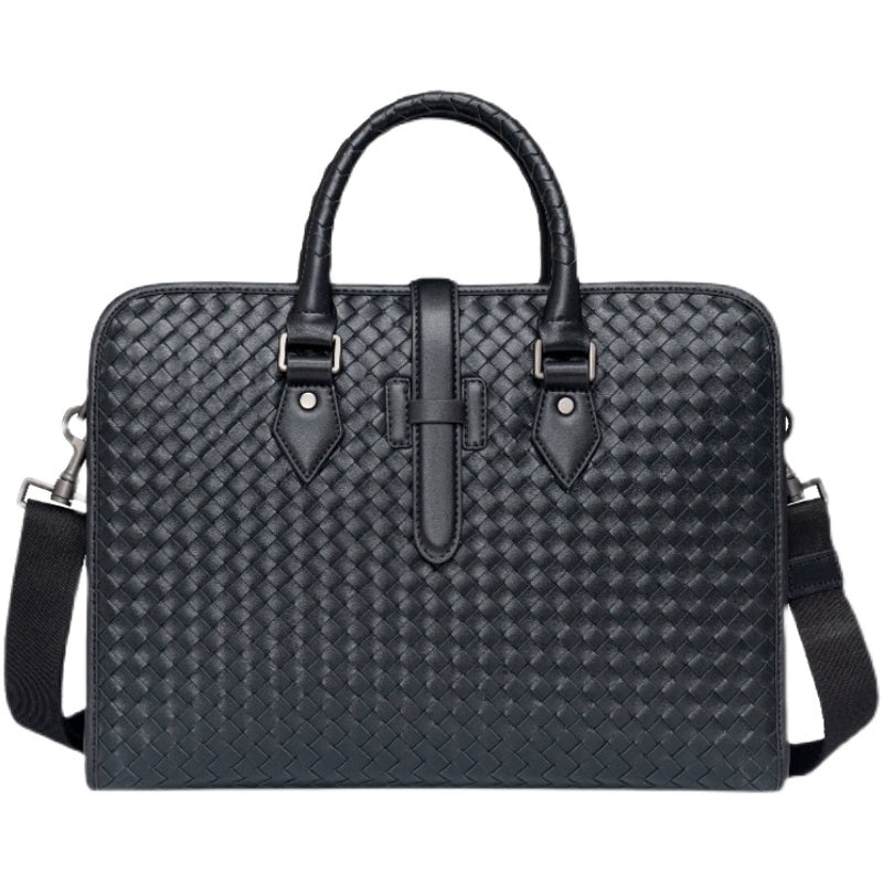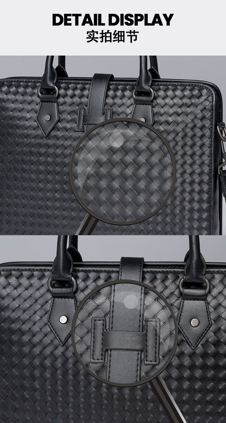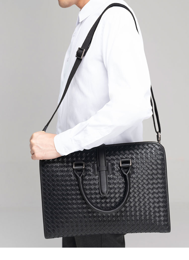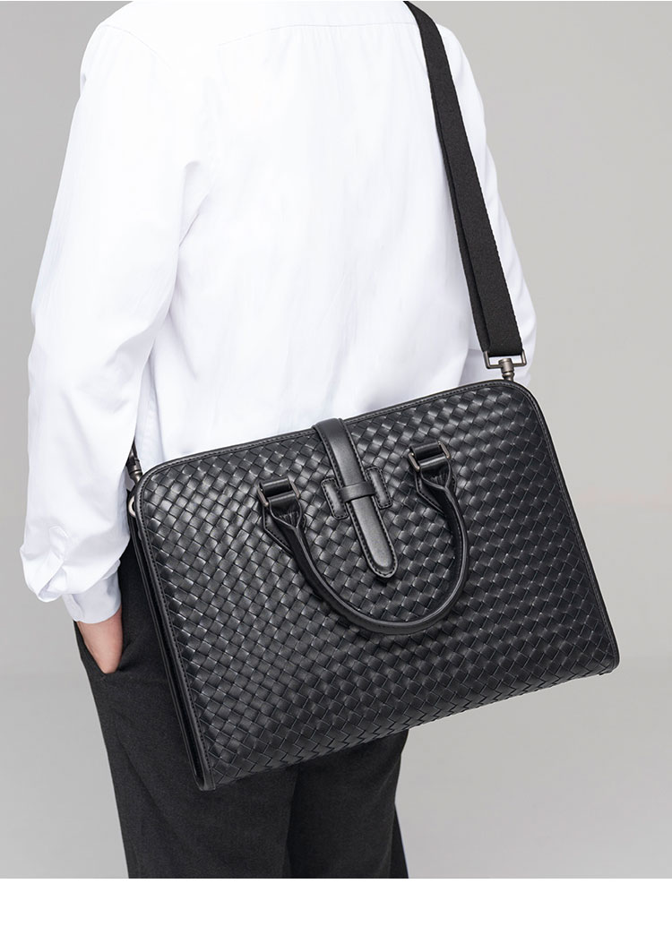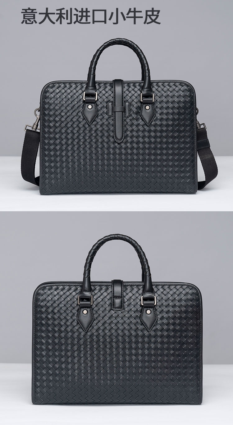 x&bv男包手提包真皮商务公文包电脑包编织头层牛皮单肩斜挎包拎包