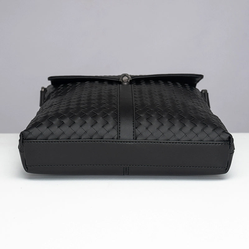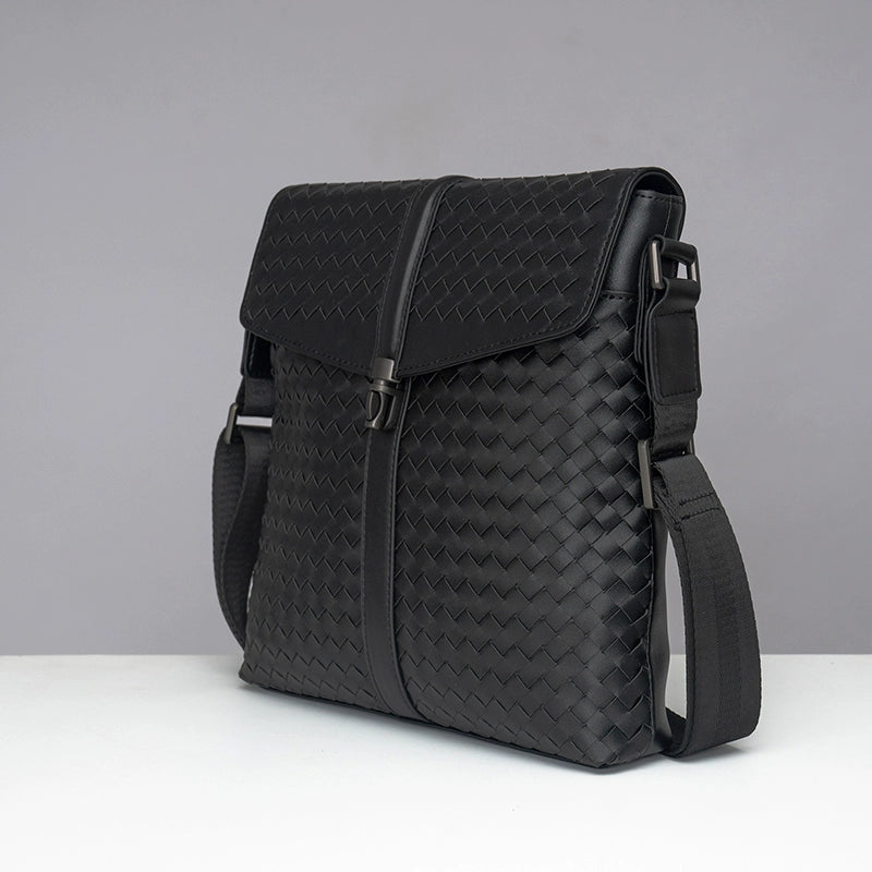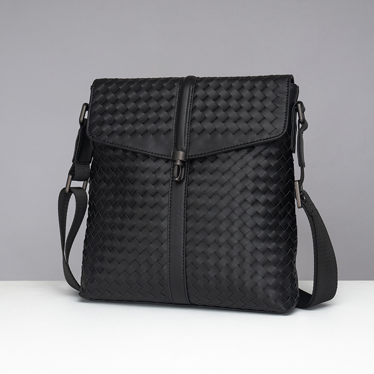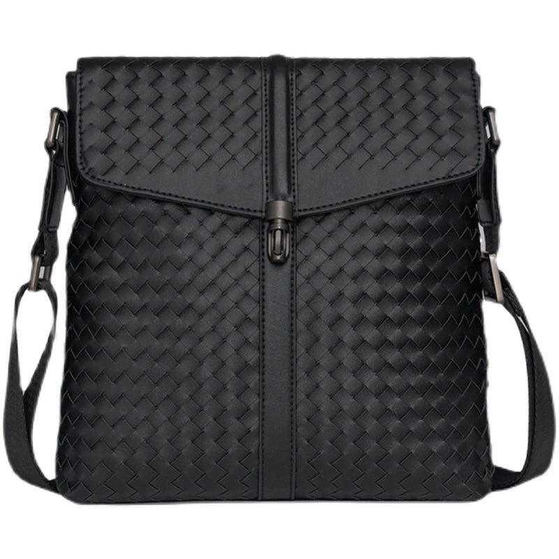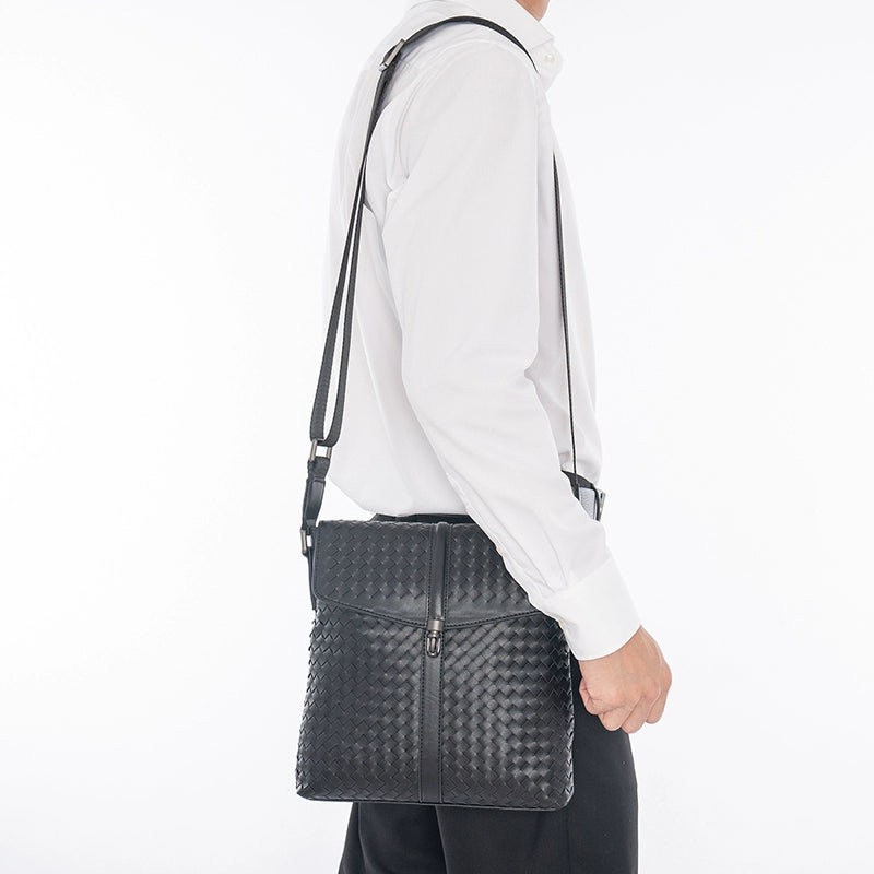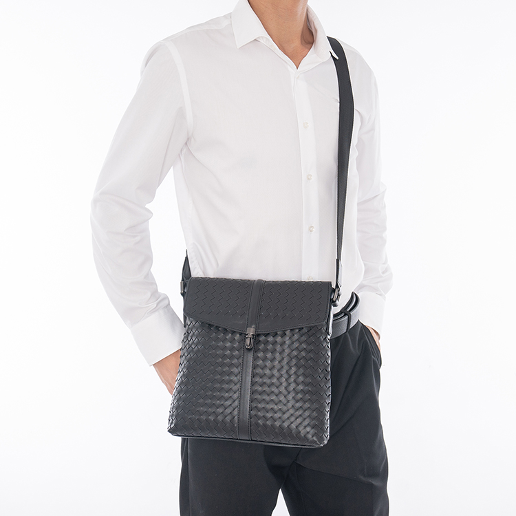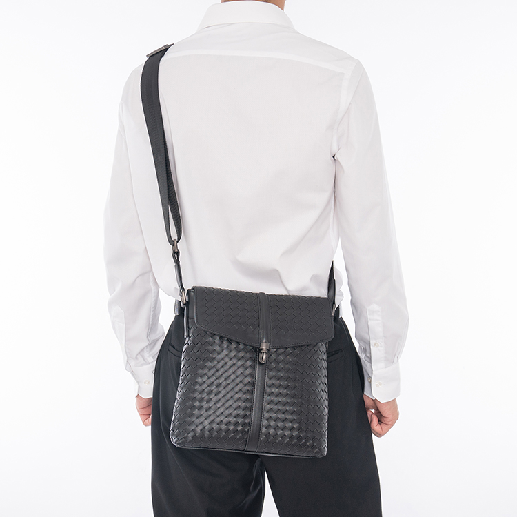 X&BV男单肩包真皮编织翻盖商务休闲男士竖款时尚小背包男士斜挎包
