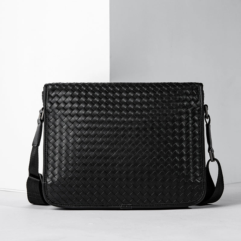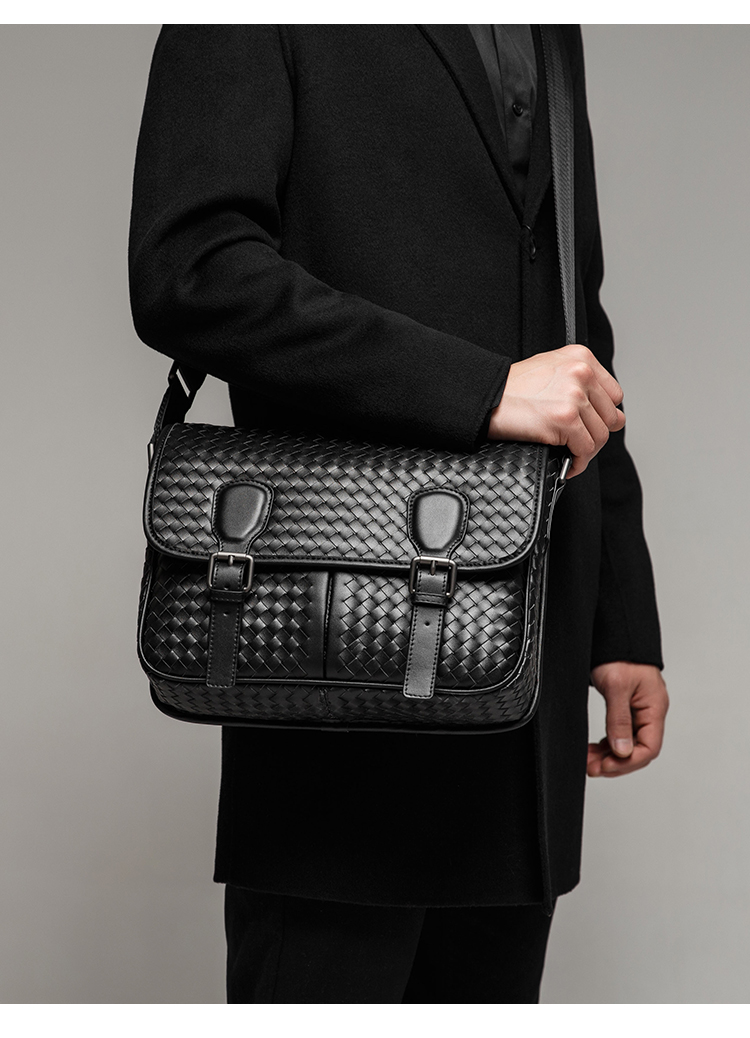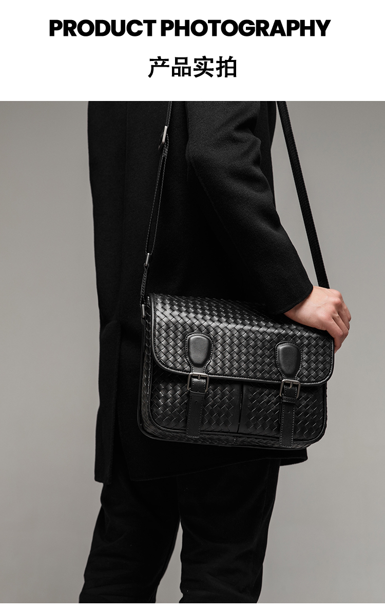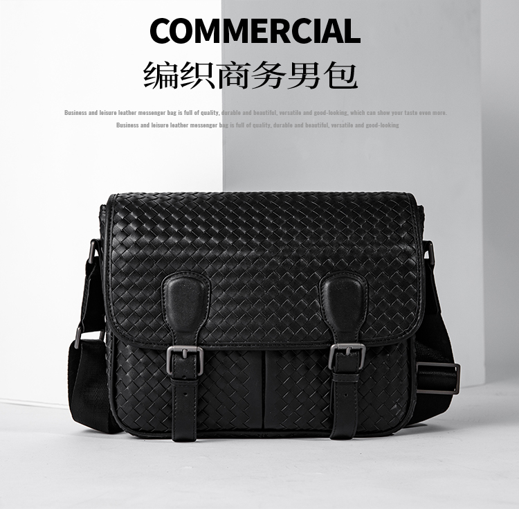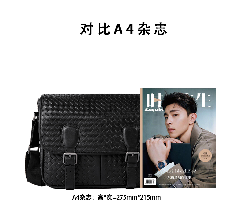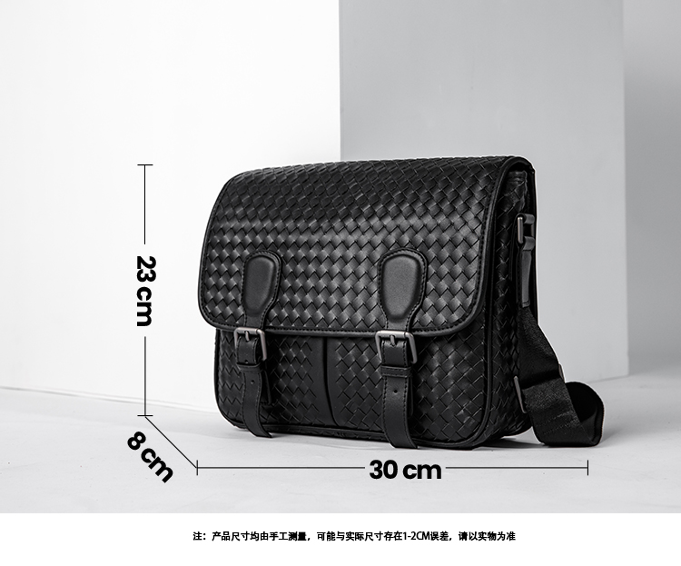 X&BV男士包包单肩斜挎包真皮休闲编织牛皮翻盖时尚青年背包邮差包