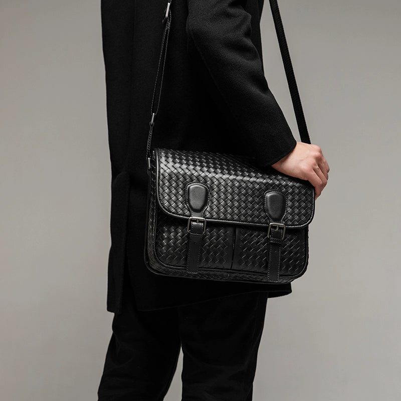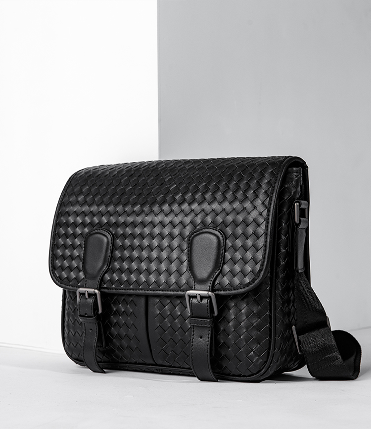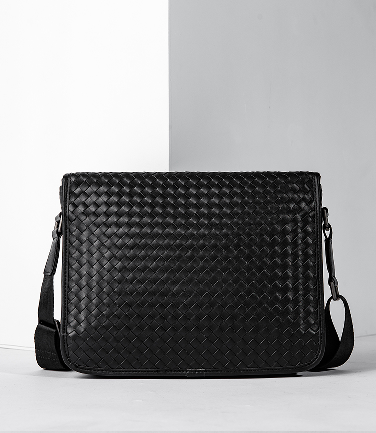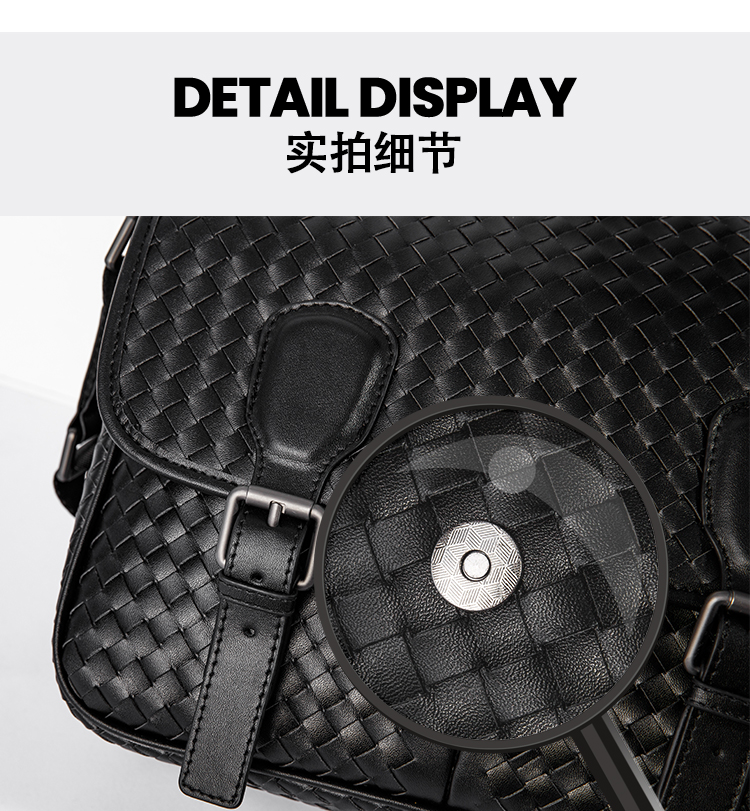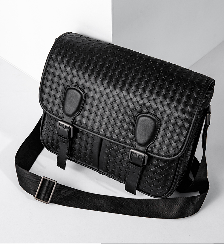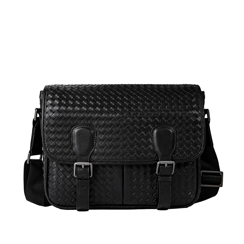 X&BV男士包包单肩斜挎包真皮休闲编织牛皮翻盖时尚青年背包邮差包