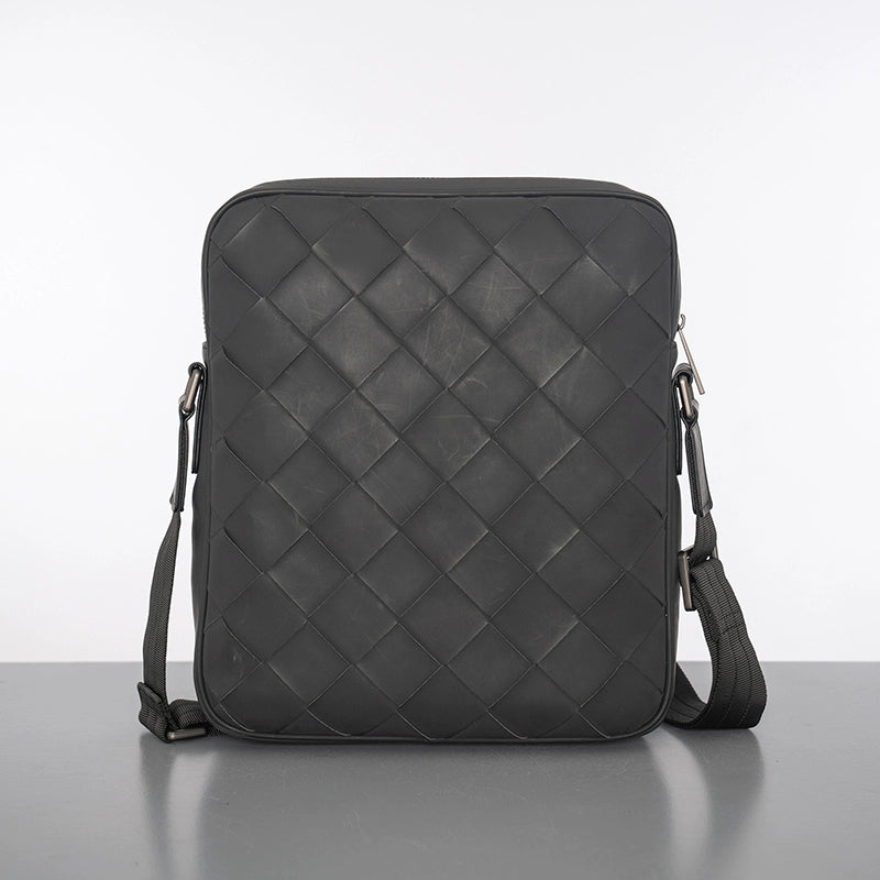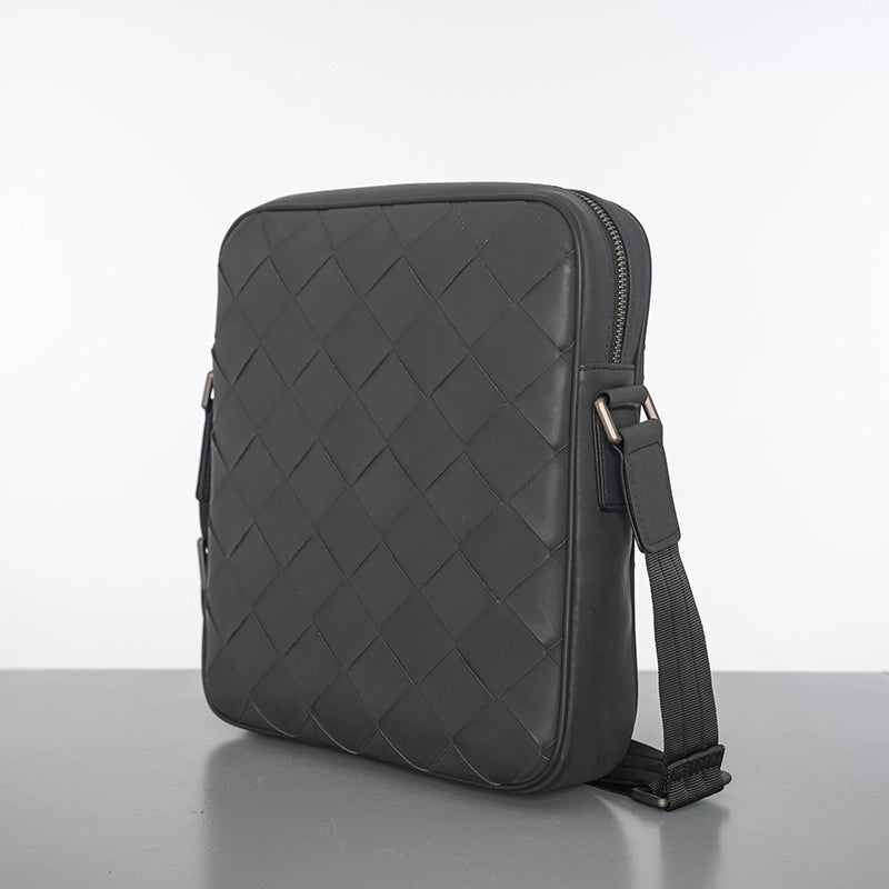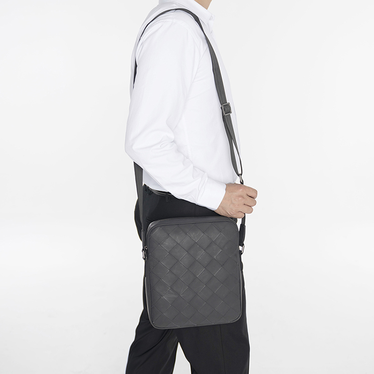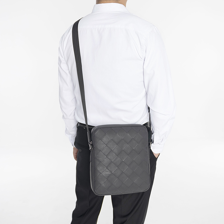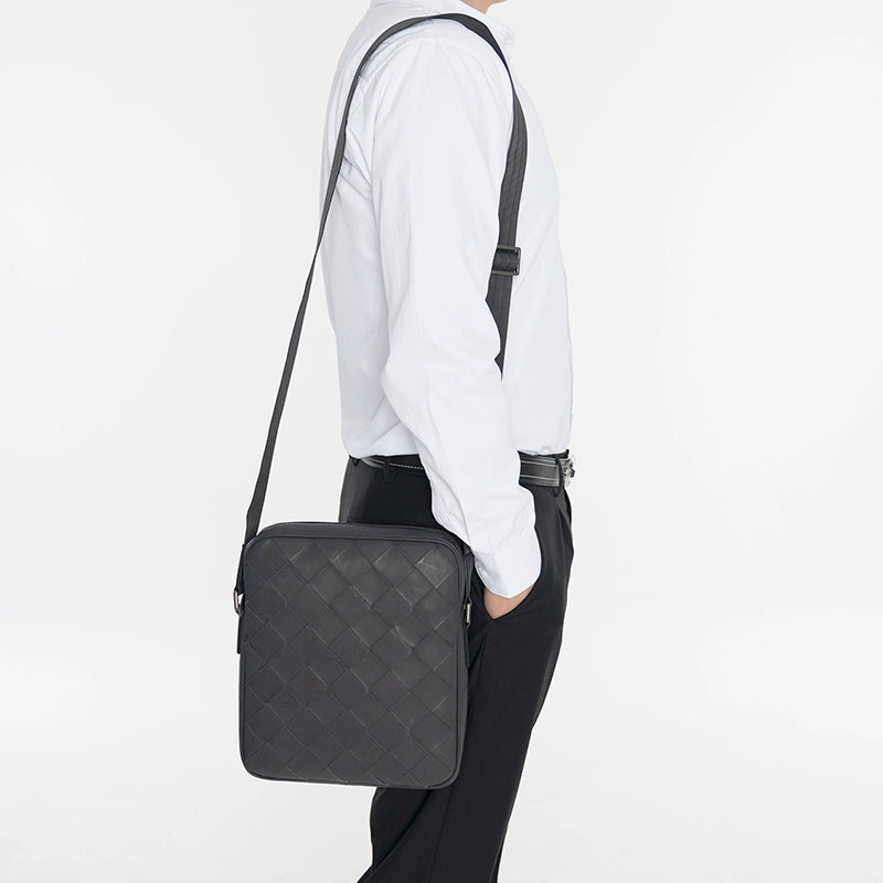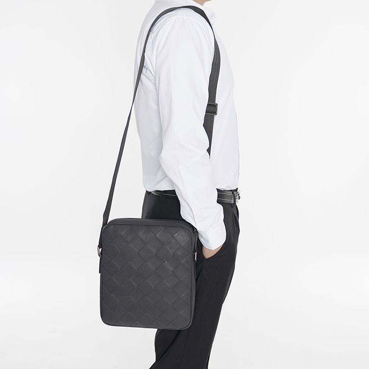 X&BV男士单肩包商务休闲真皮时尚小背包编织青年竖款潮男斜挎包包