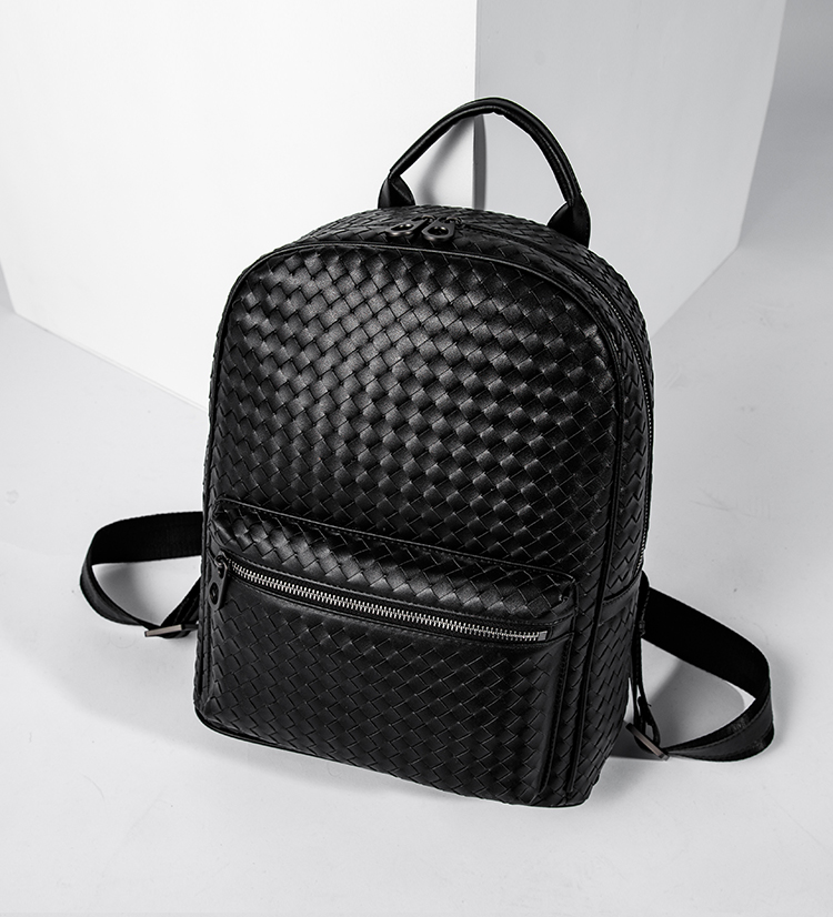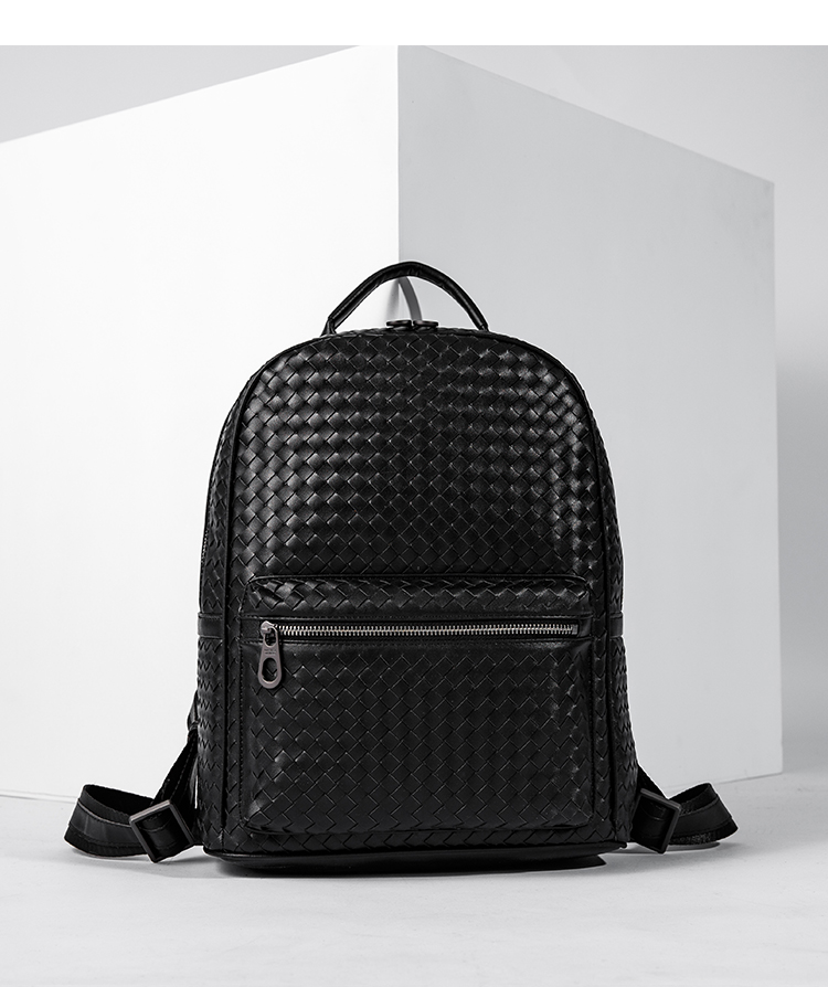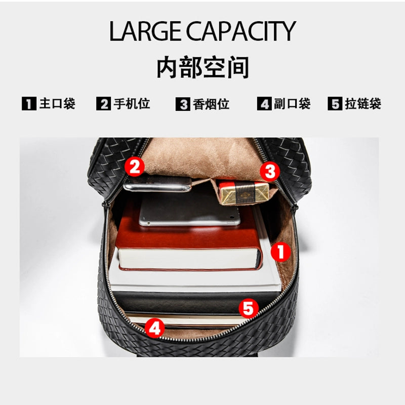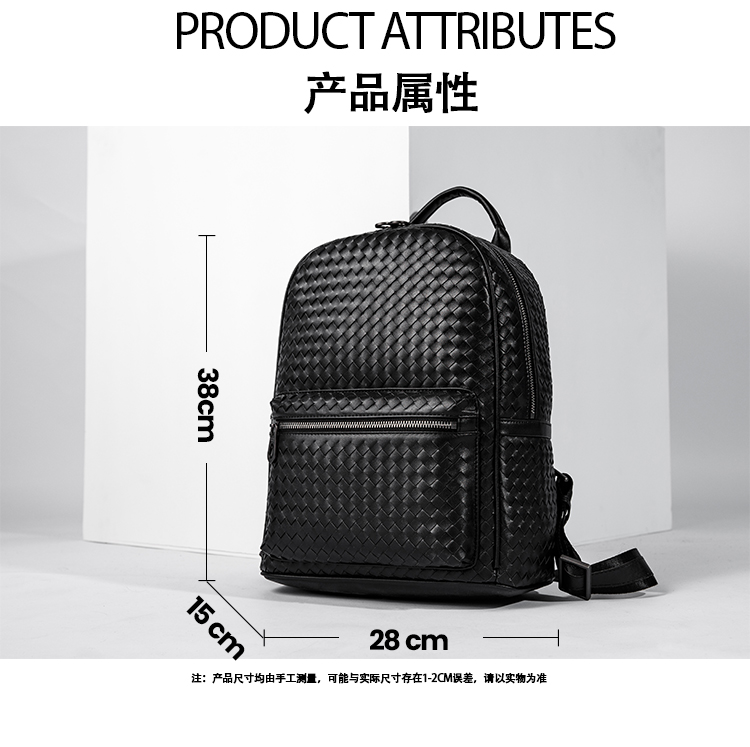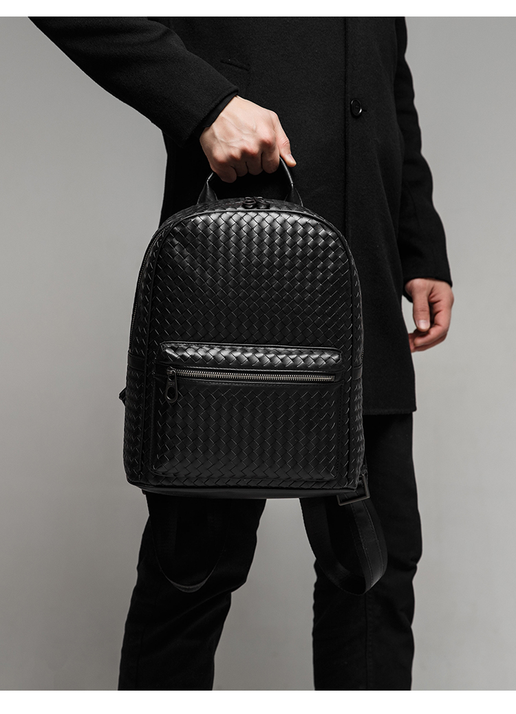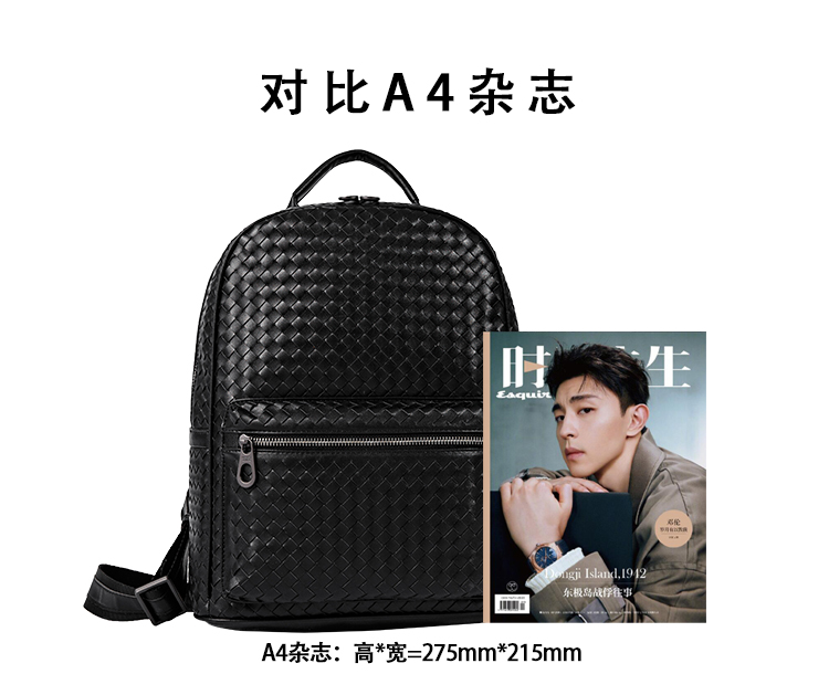 X&BV男士双肩包商务真皮时尚潮流背包出差旅行包编织男书包电脑包