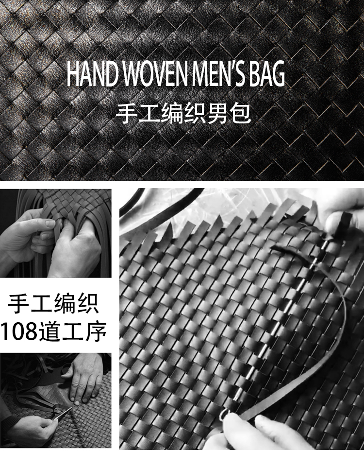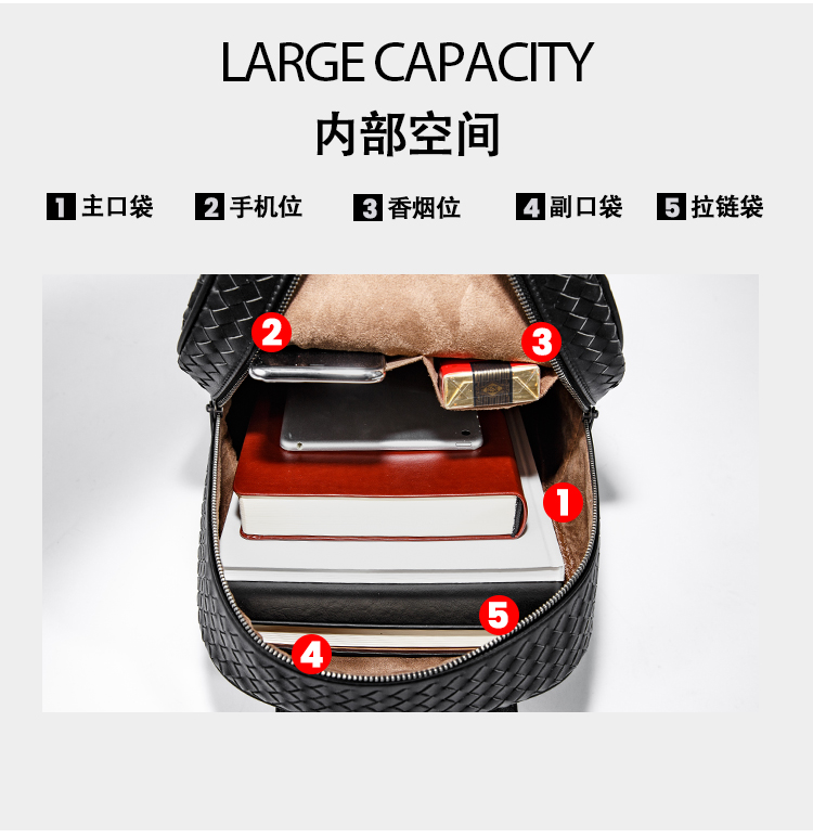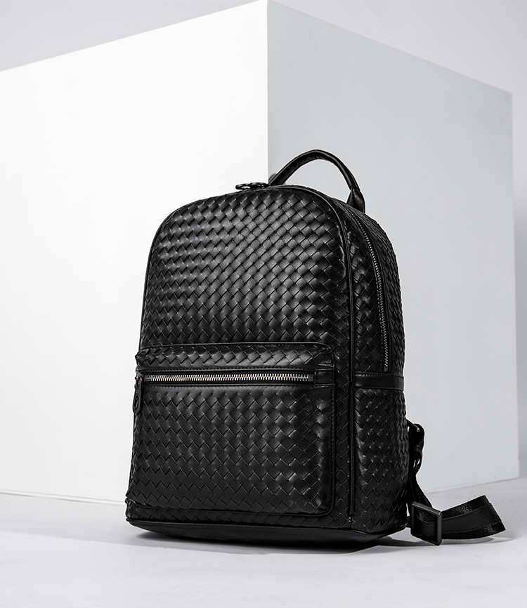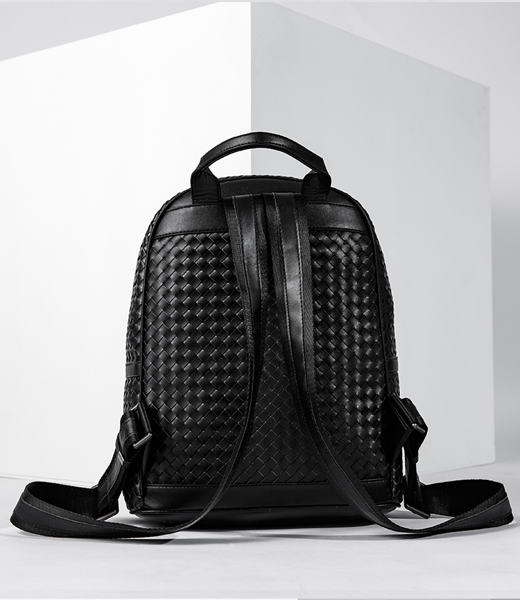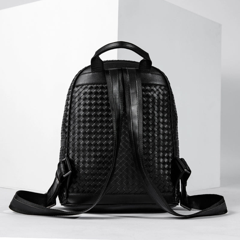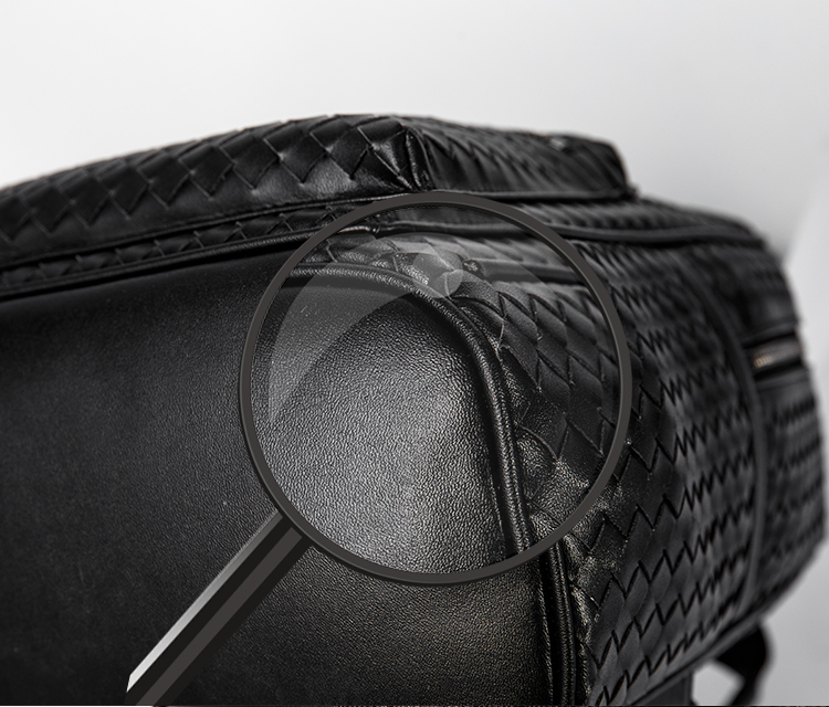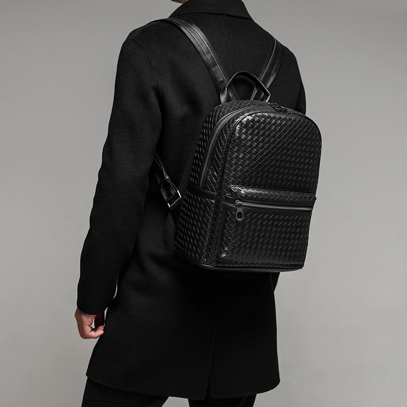 X&BV男士双肩包商务真皮时尚潮流背包出差旅行包编织男书包电脑包