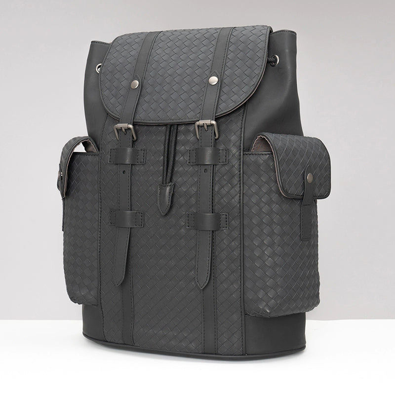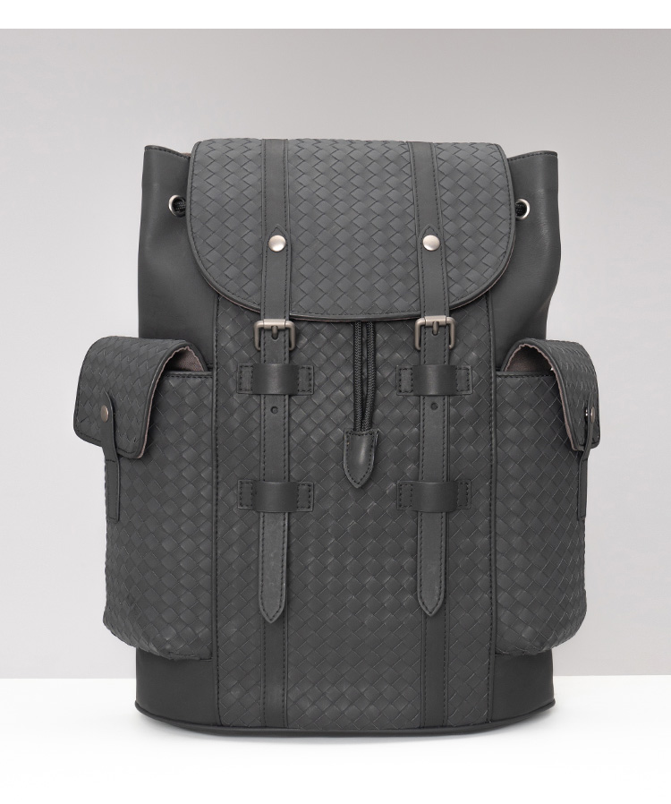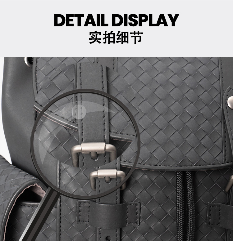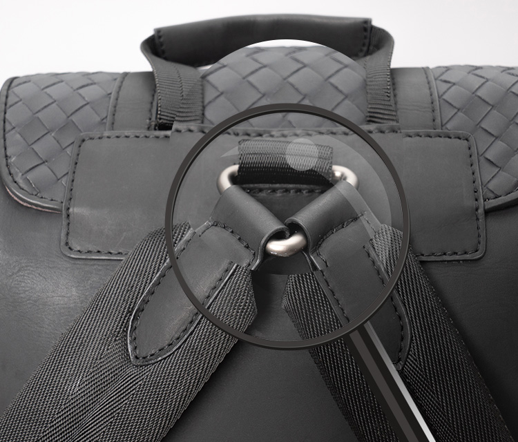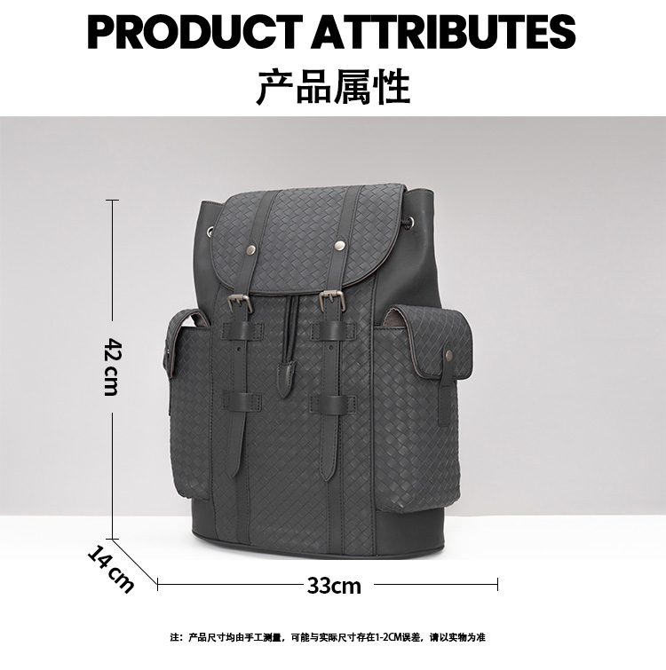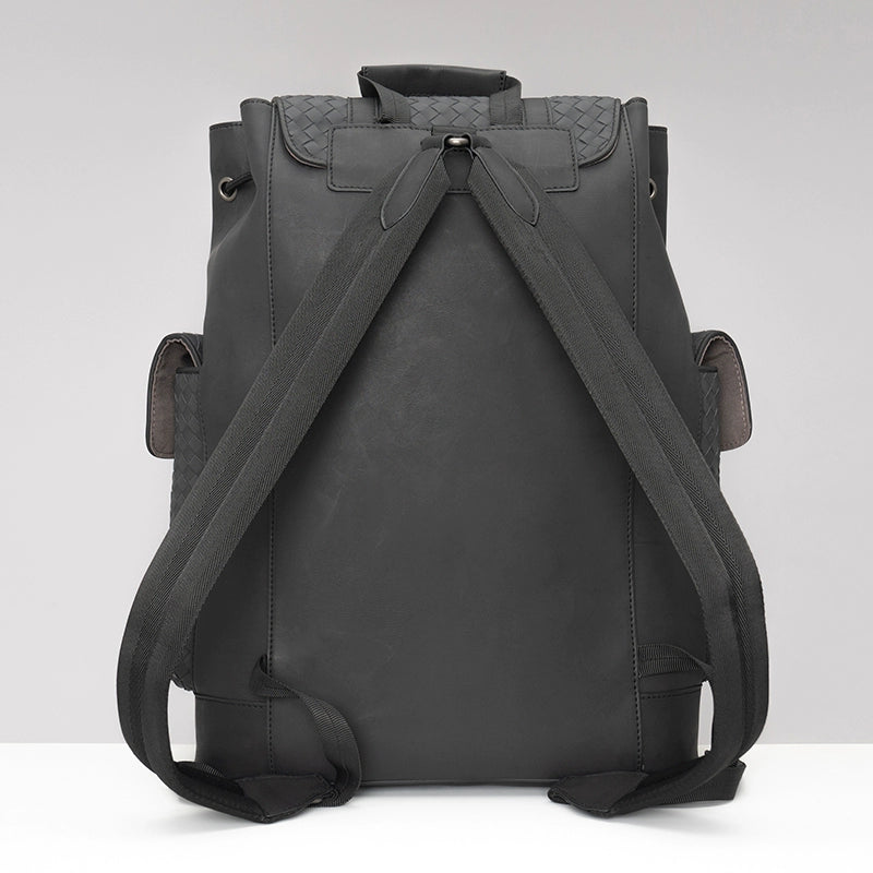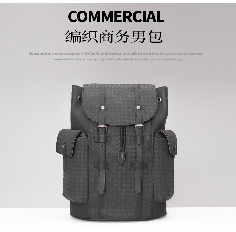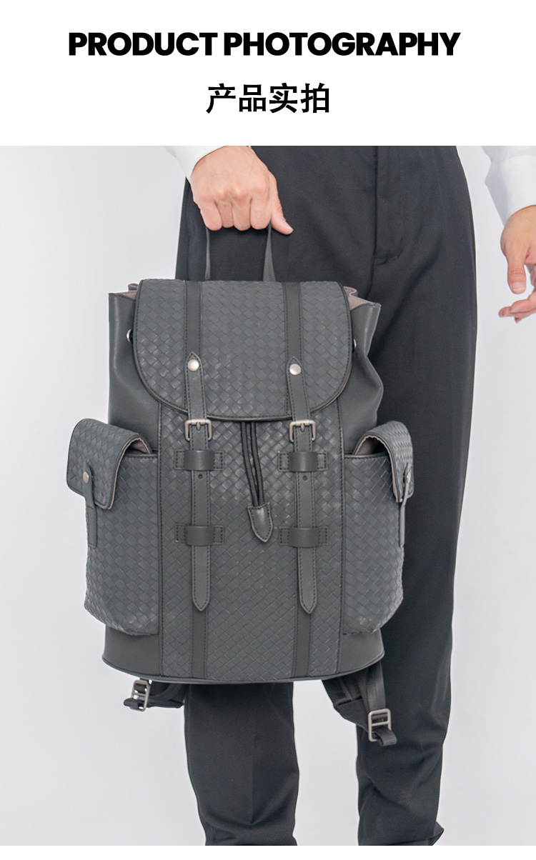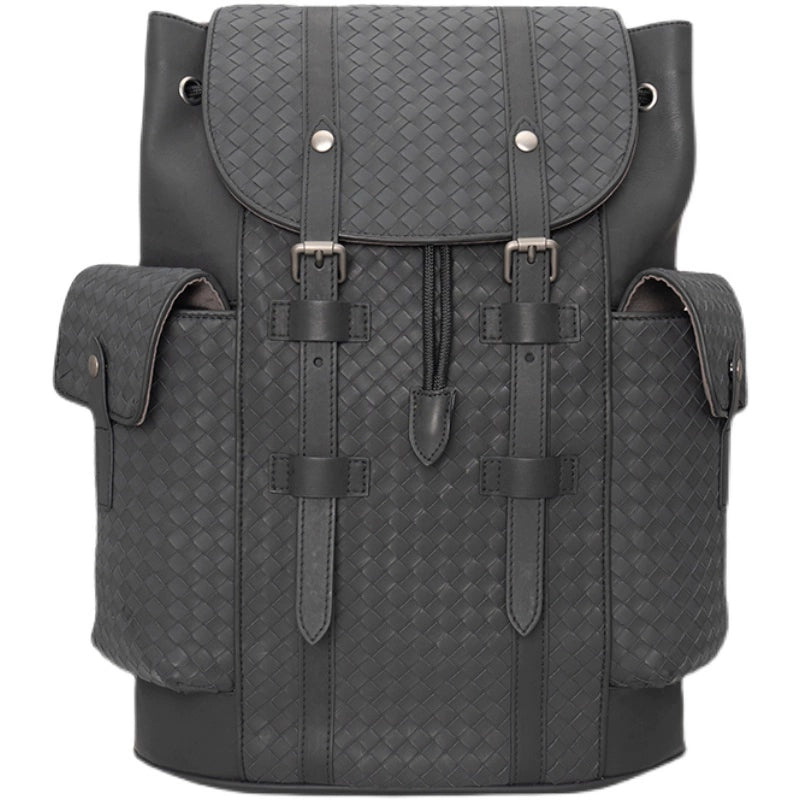 X&BV男士双肩包真皮休闲商务编织旅行包大容量书包电脑包潮男背包