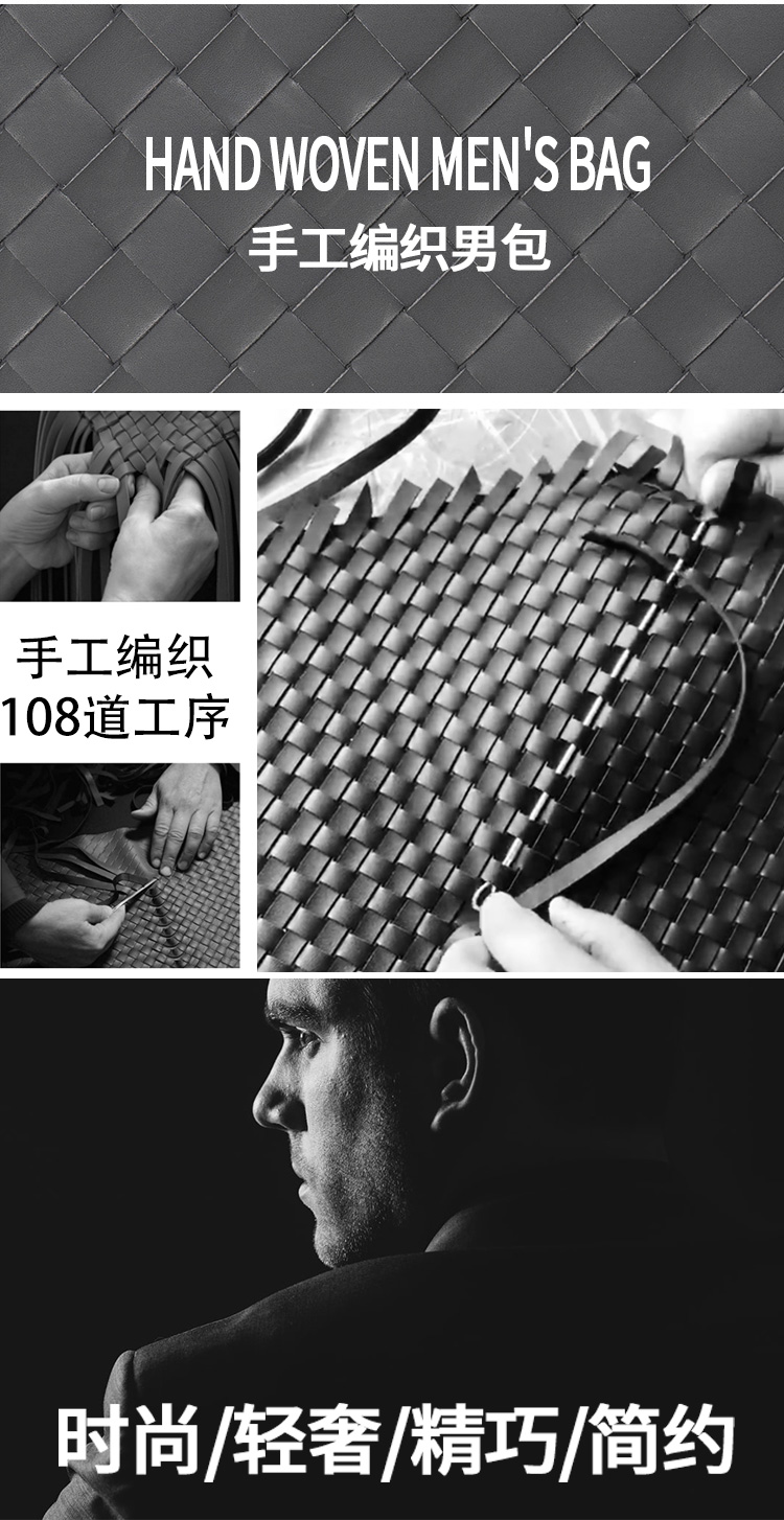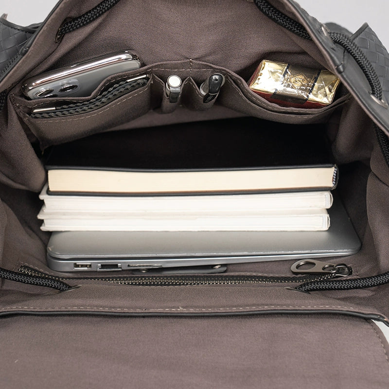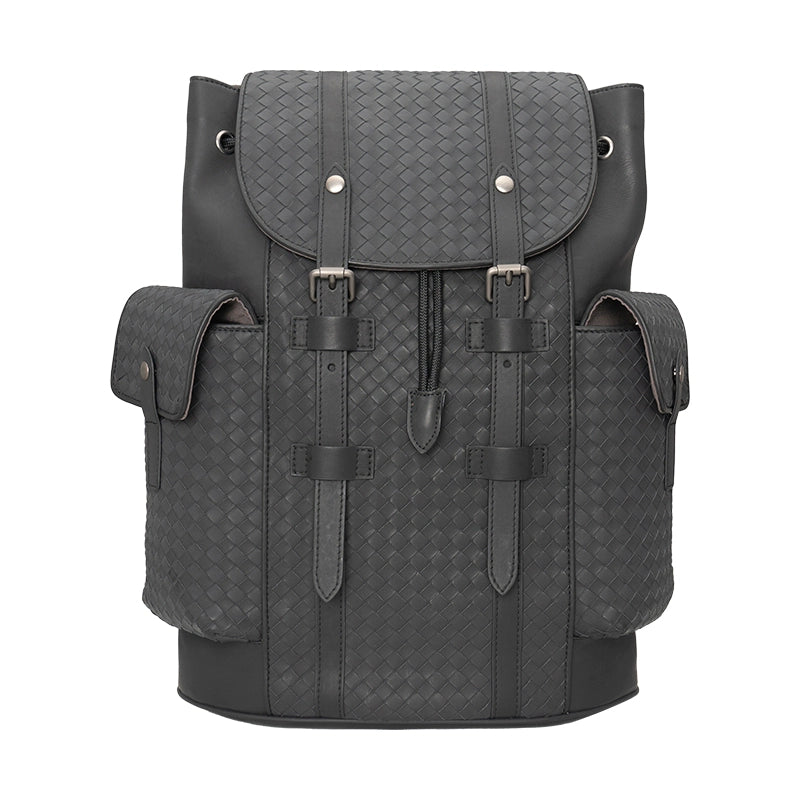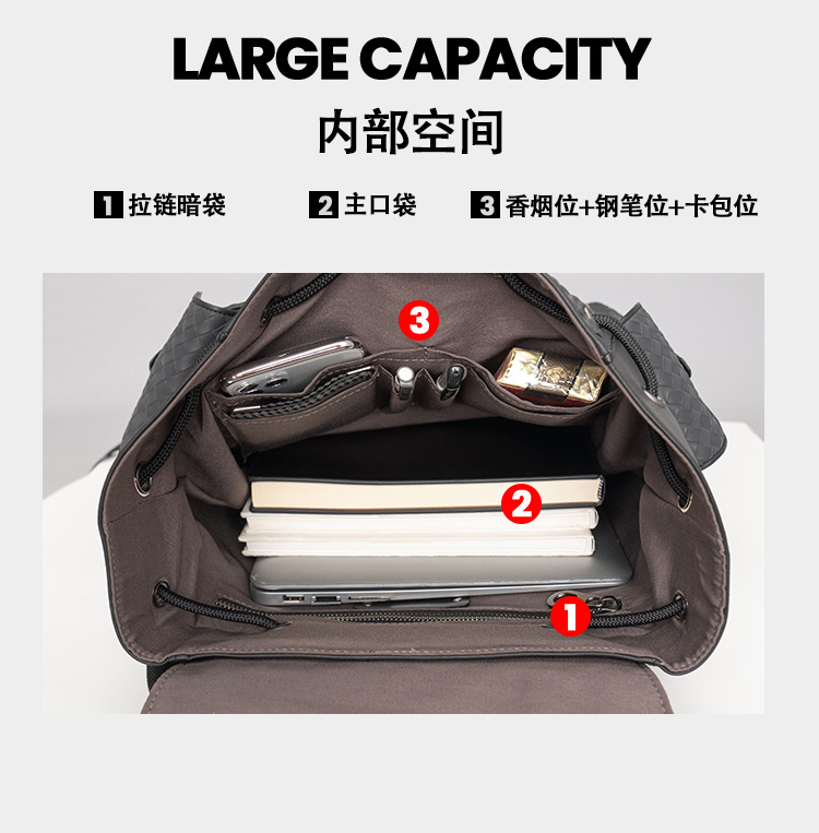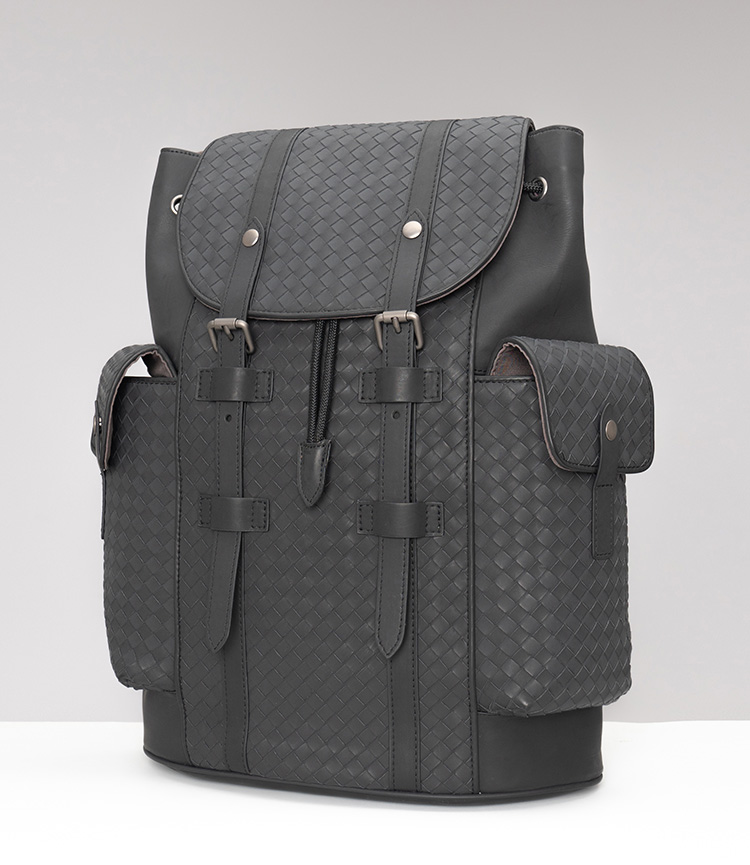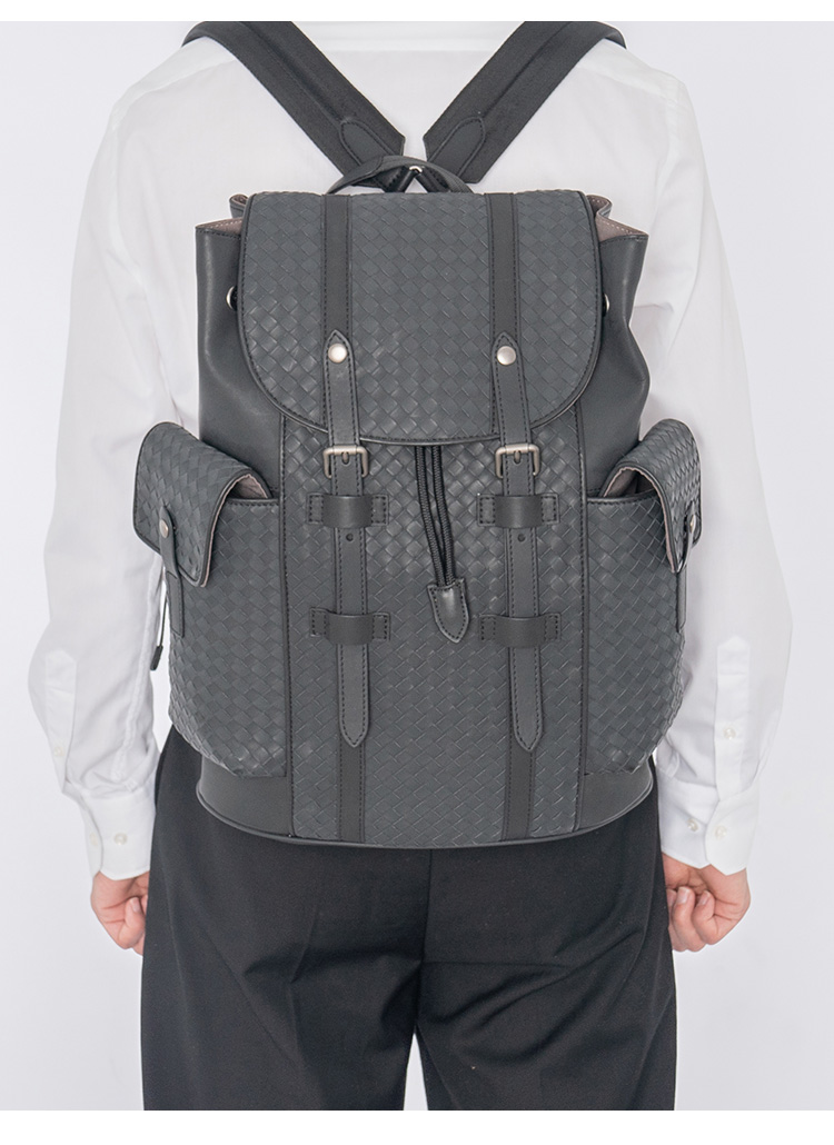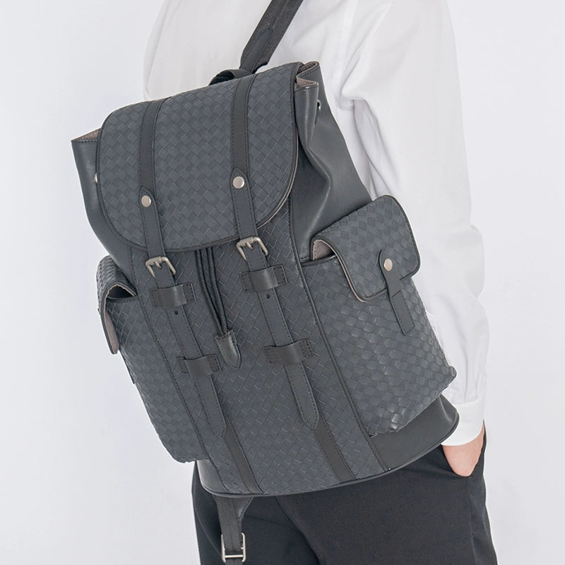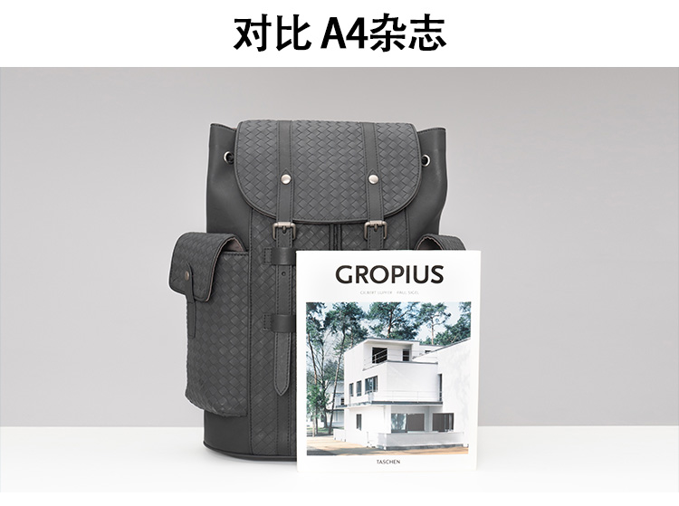 X&BV男士双肩包真皮休闲商务编织旅行包大容量书包电脑包潮男背包