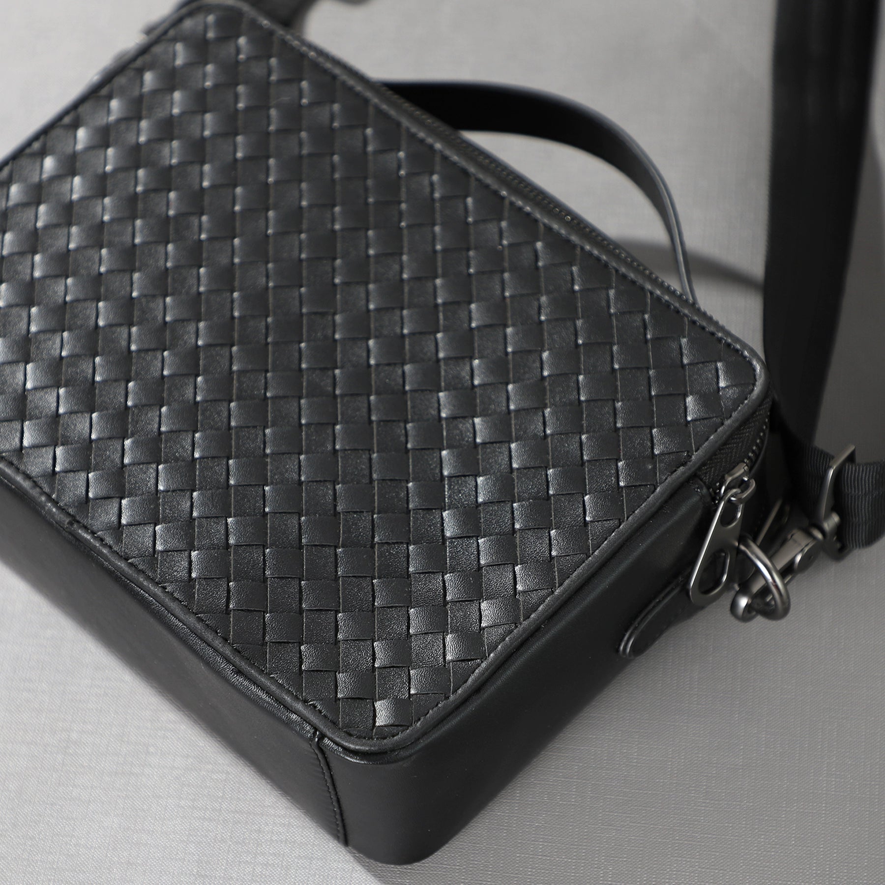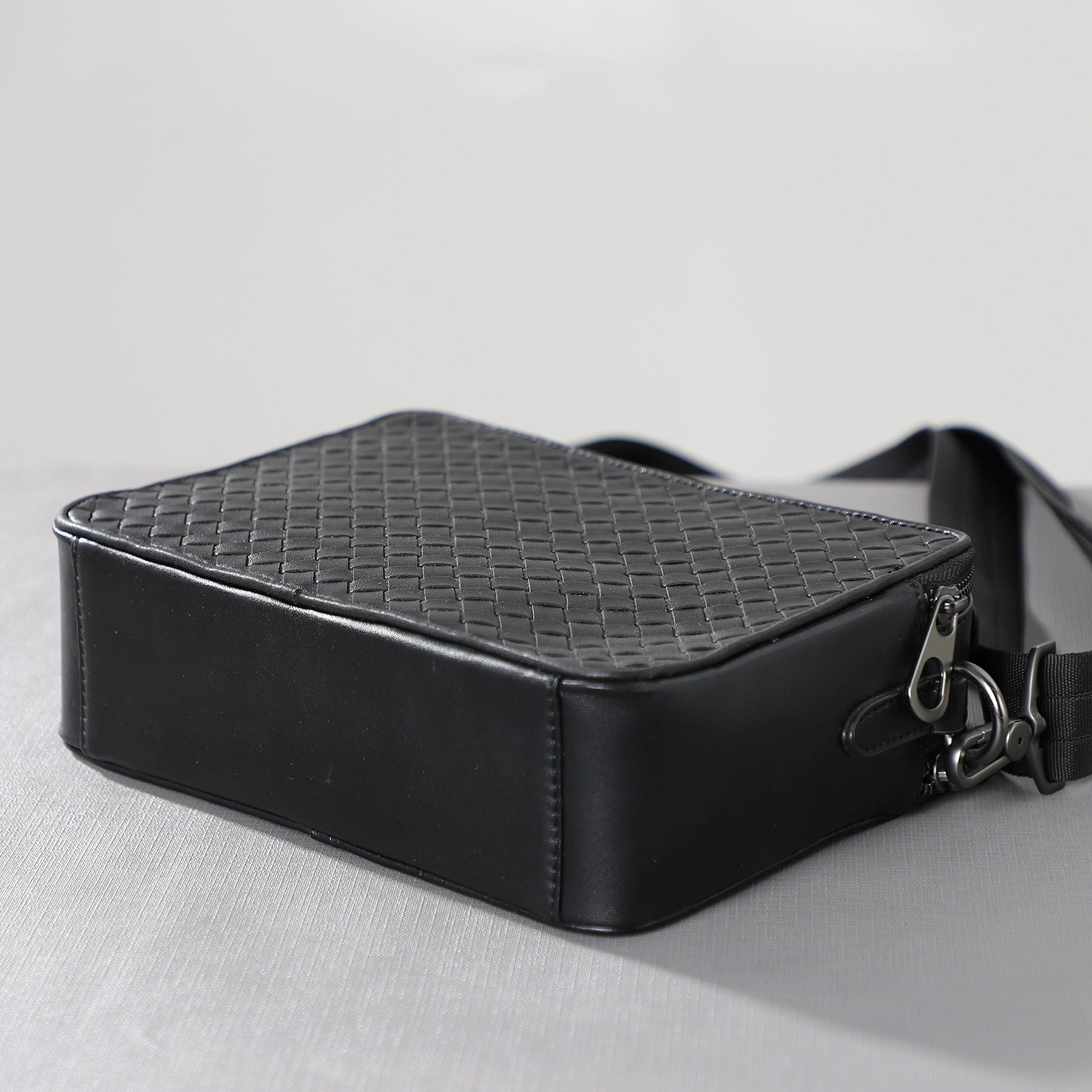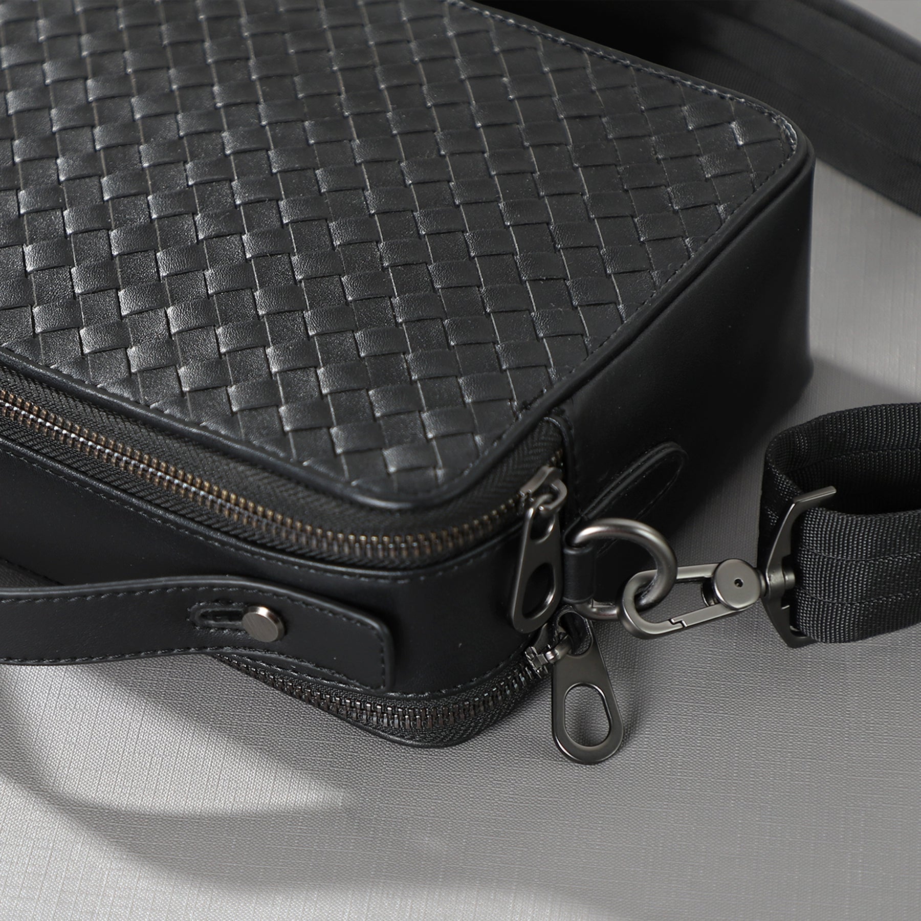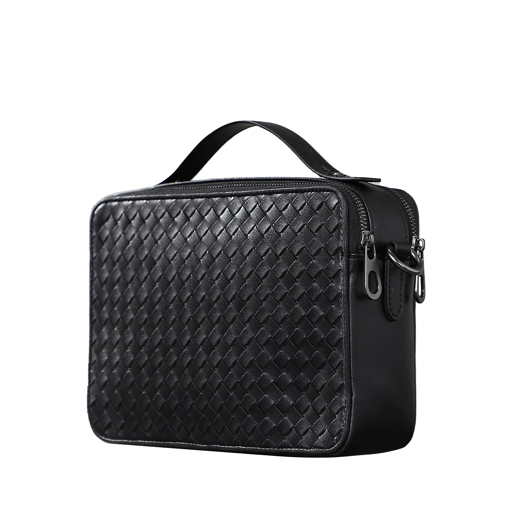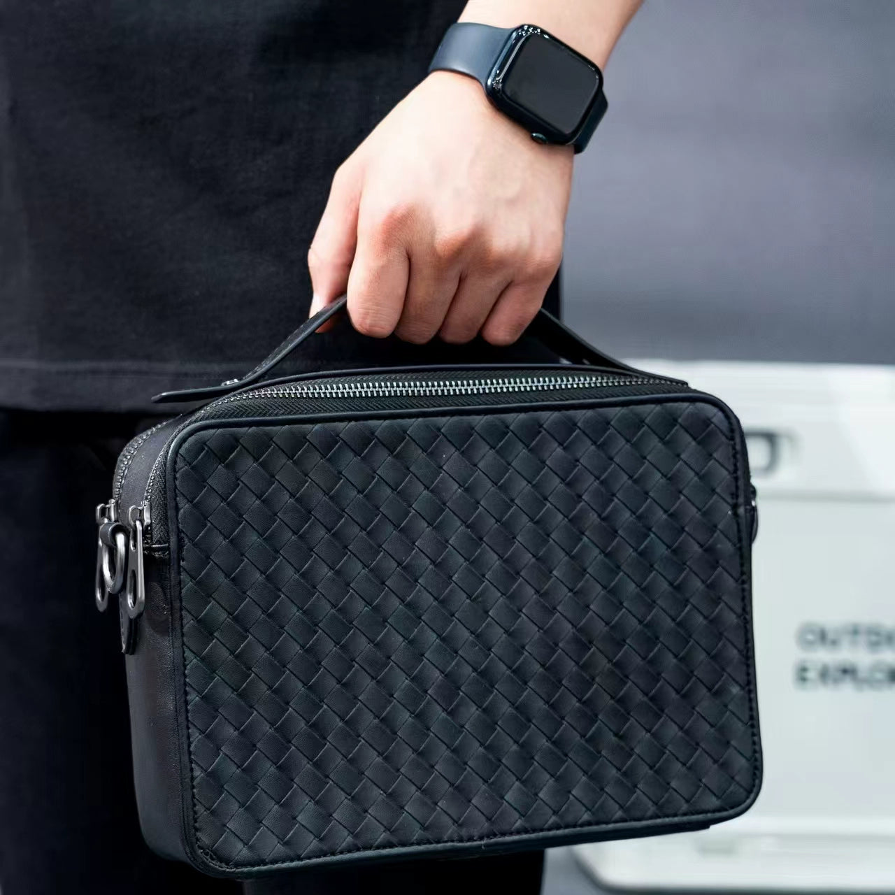 X&BV男士手提包真皮休闲时尚双拉链编织男包单肩斜挎包商务公文包