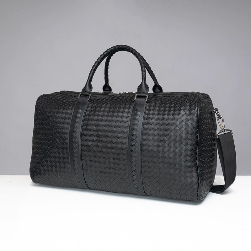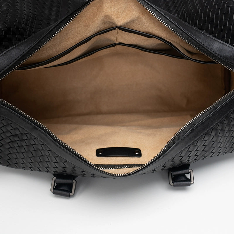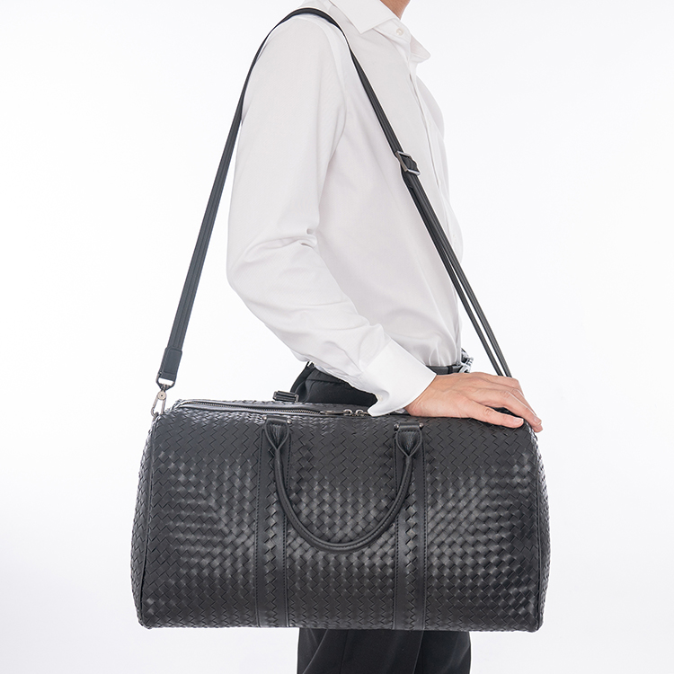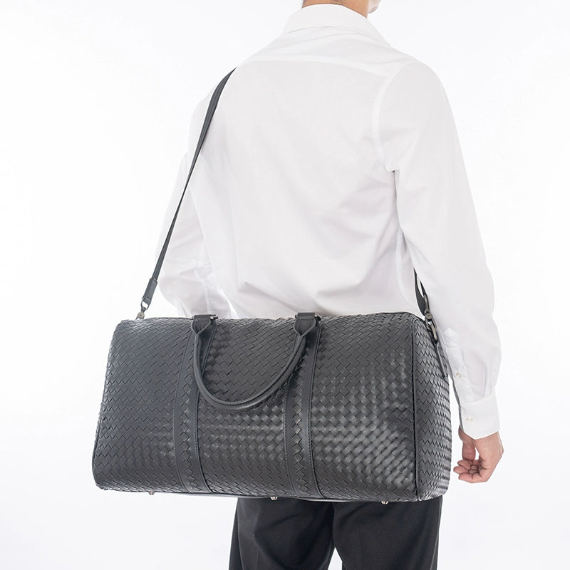 X&BV男士手提旅行包真皮大容量商务编织单肩斜挎包健身短途行李包