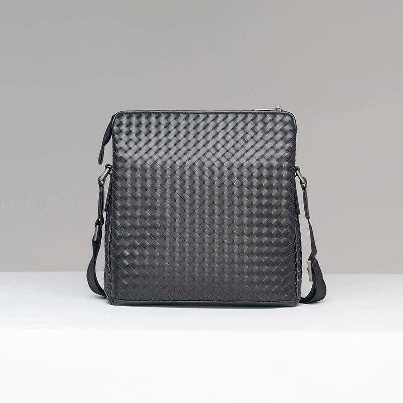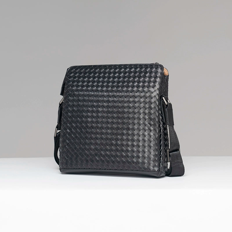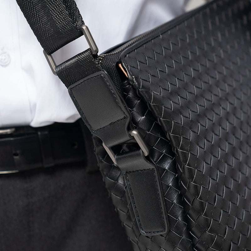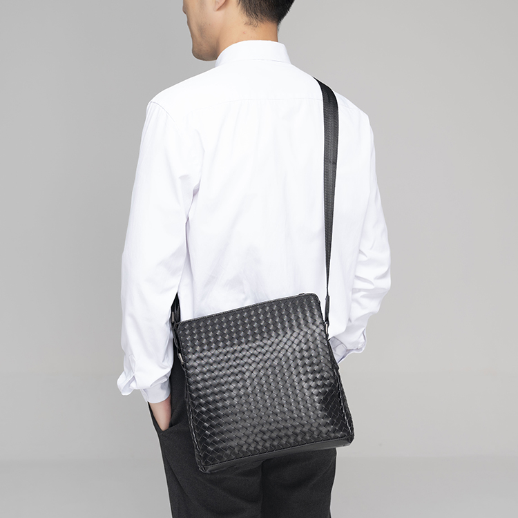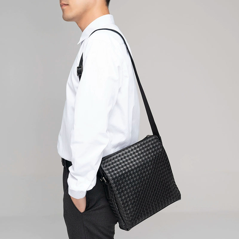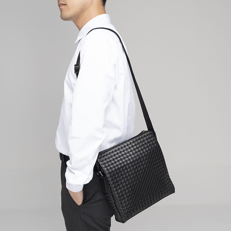 X&BV男士斜挎包休闲商务单肩包男竖款编织时尚潮流青年背包大容量