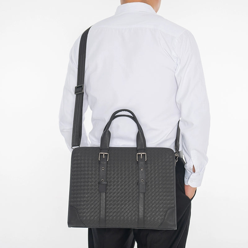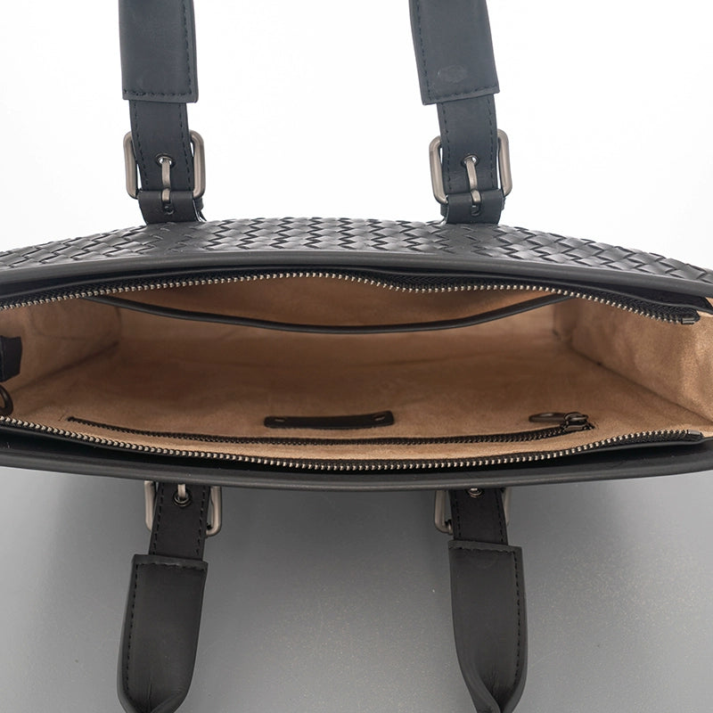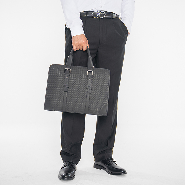 X&BV真皮公文包男商务男士包包编织休闲电脑包手提包男单肩斜挎包