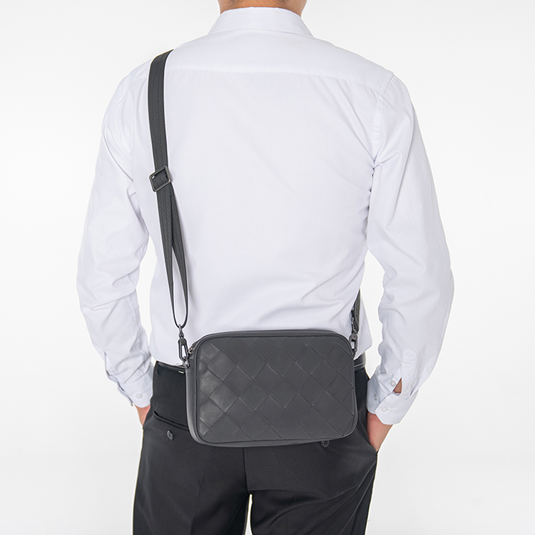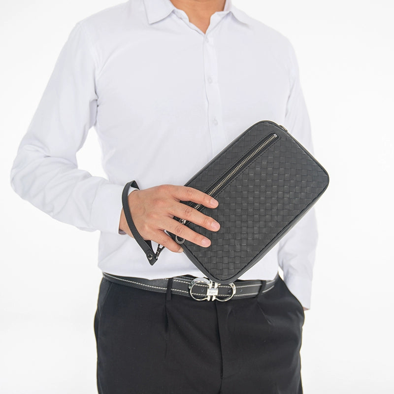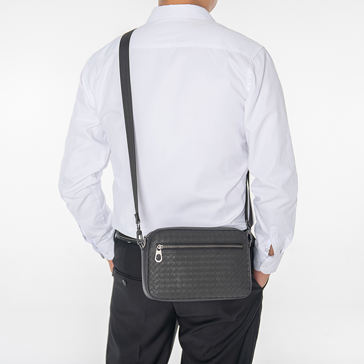 X&BV真皮单肩包男斜挎包休闲编织横款迷你韩版多功能手拿包男手包