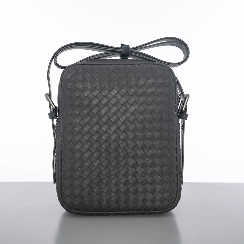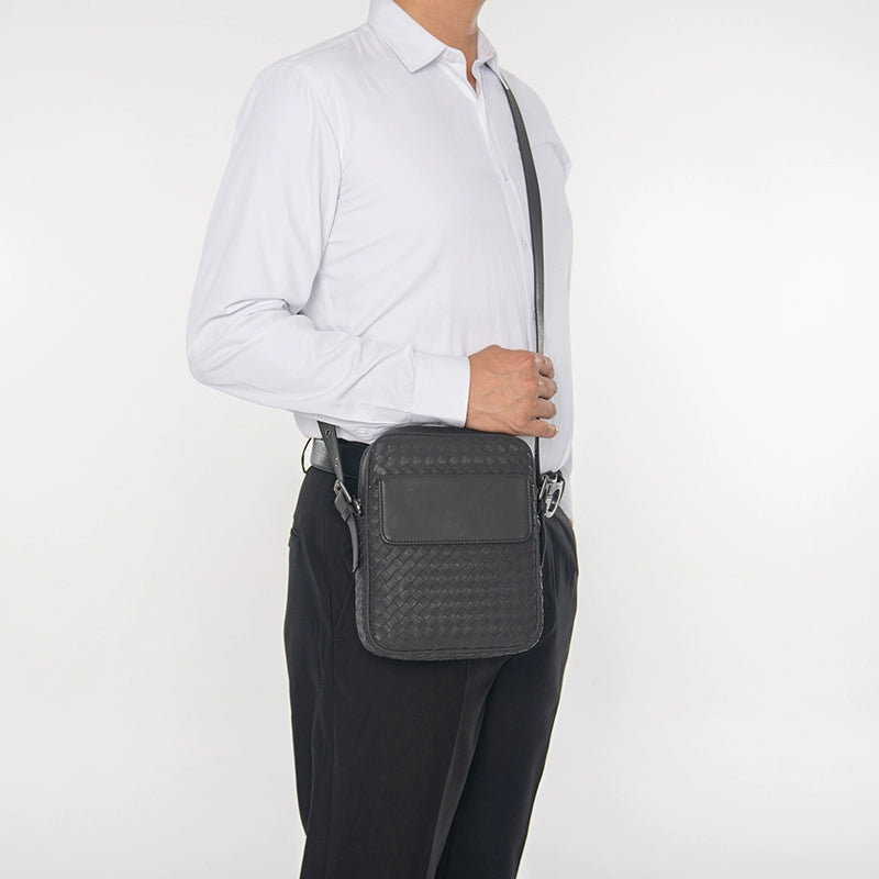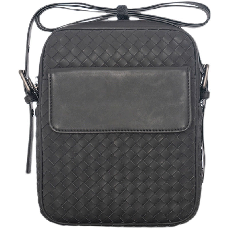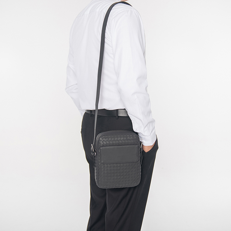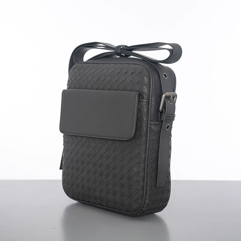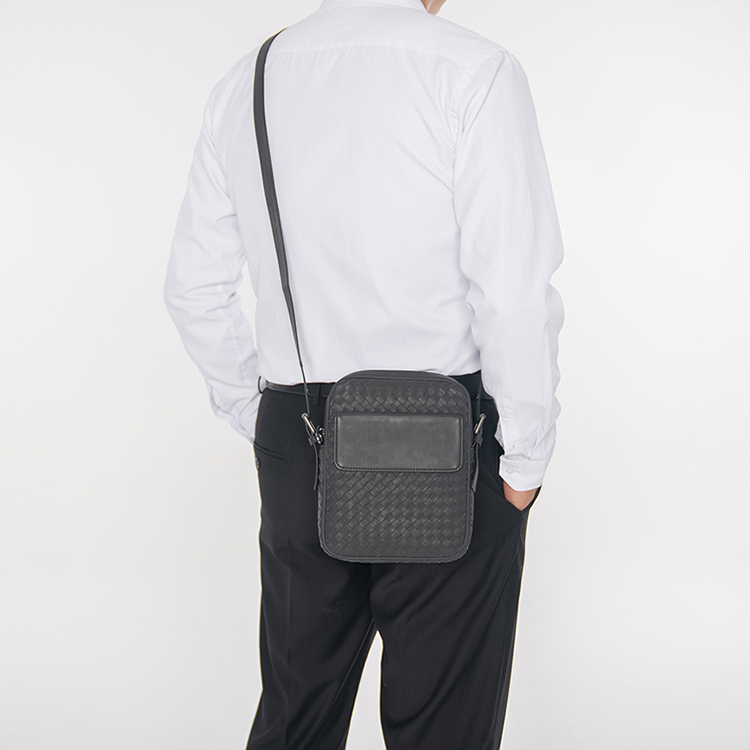 X&BV真皮男包单肩包新款编织竖版潮流商务休闲男士包包斜挎包背包