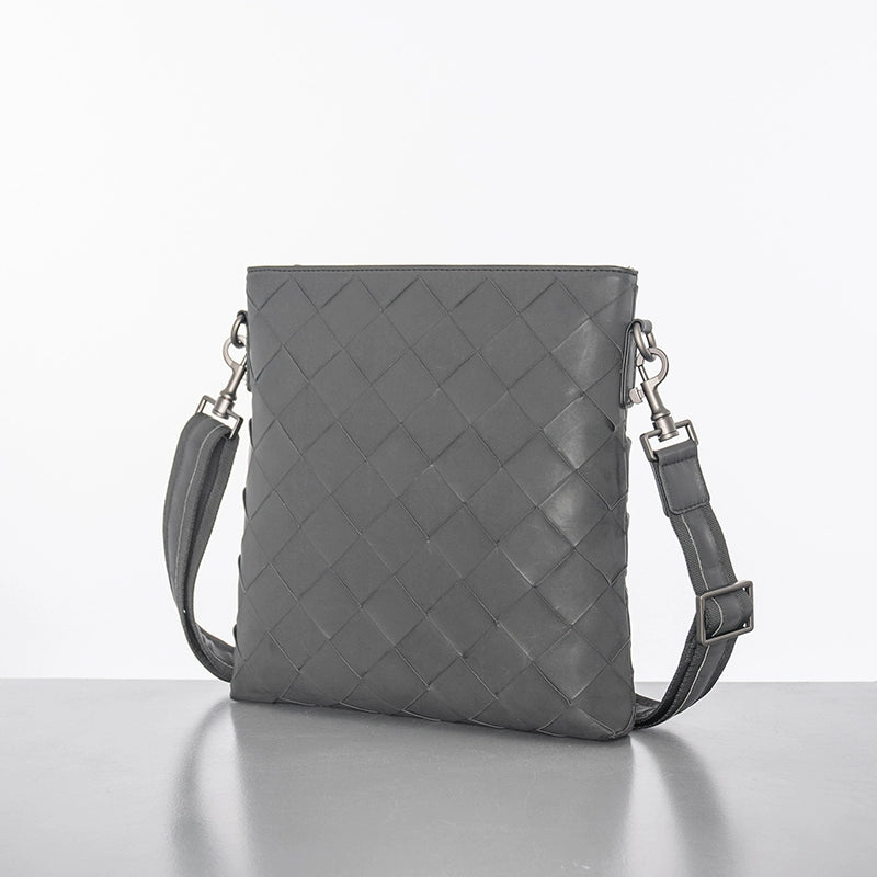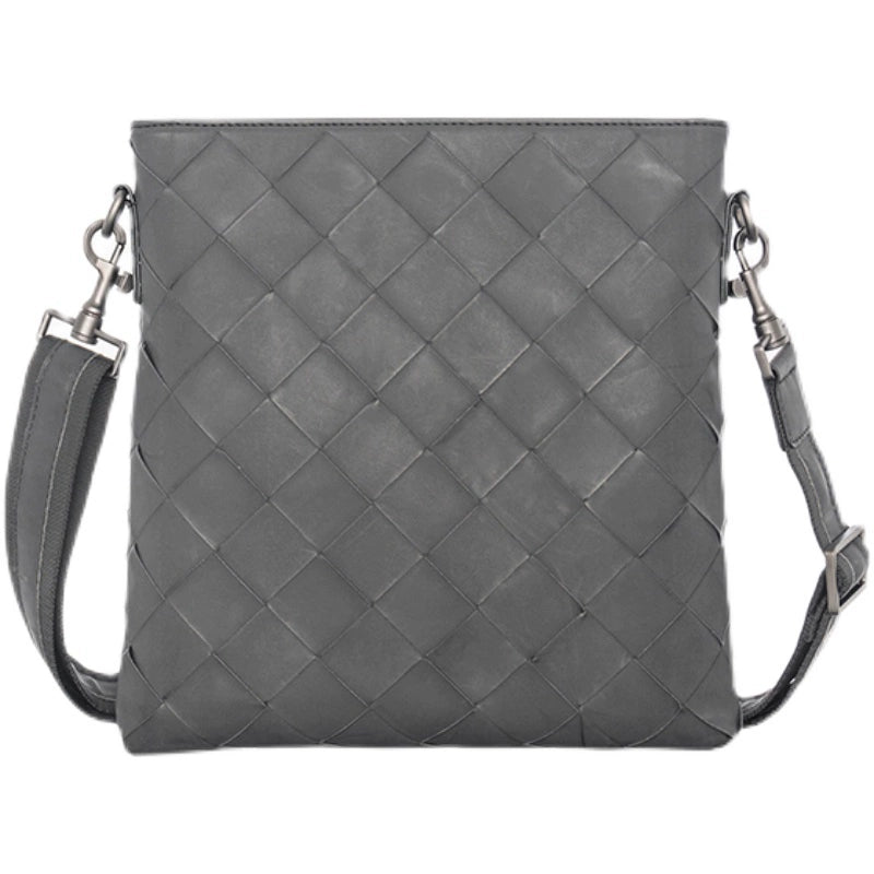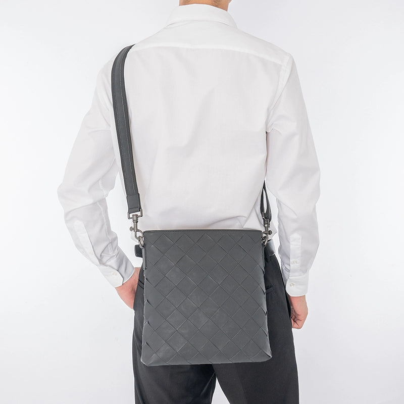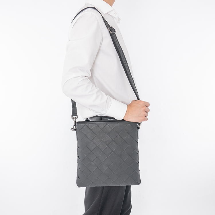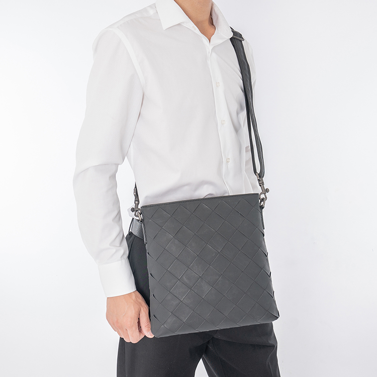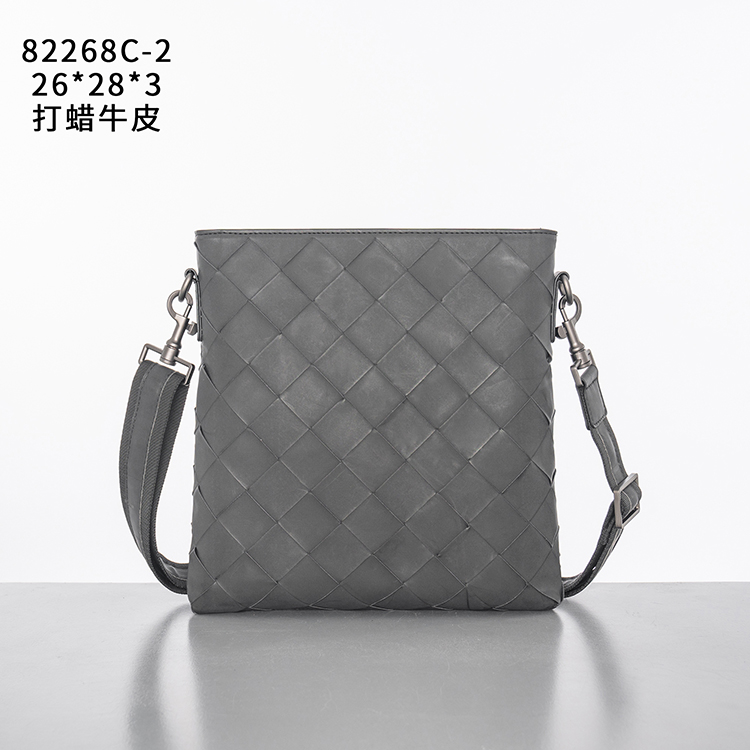 X&BV真皮男包单肩包时尚休闲竖款小背包编织男士包包商务男斜挎包