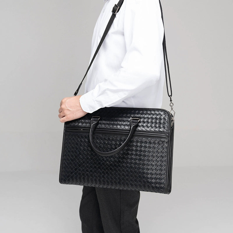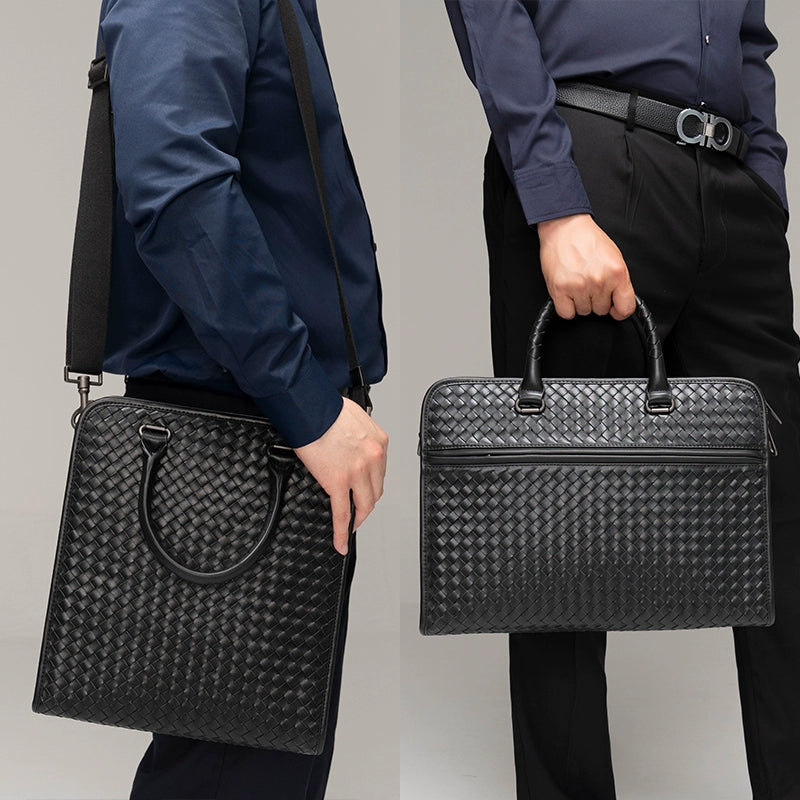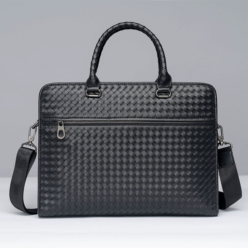 x&bv真皮男包手提包休闲单肩斜挎包编织电脑包商务男士公文包拎包