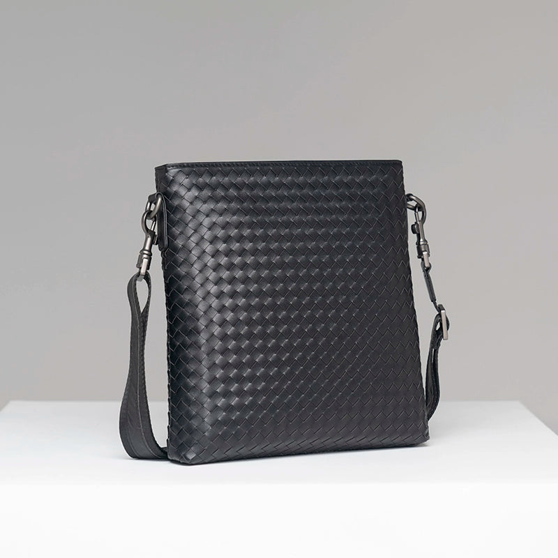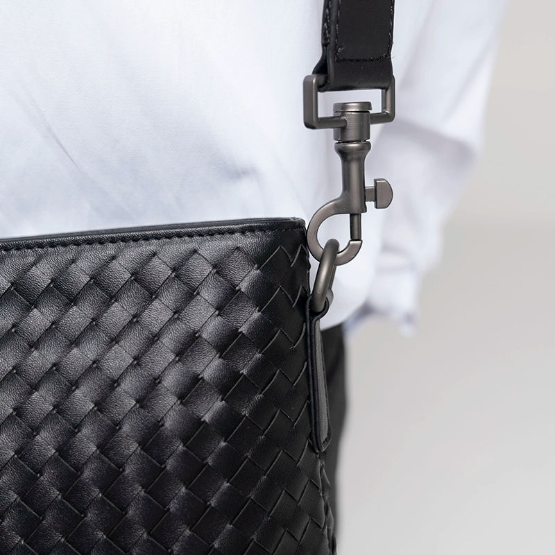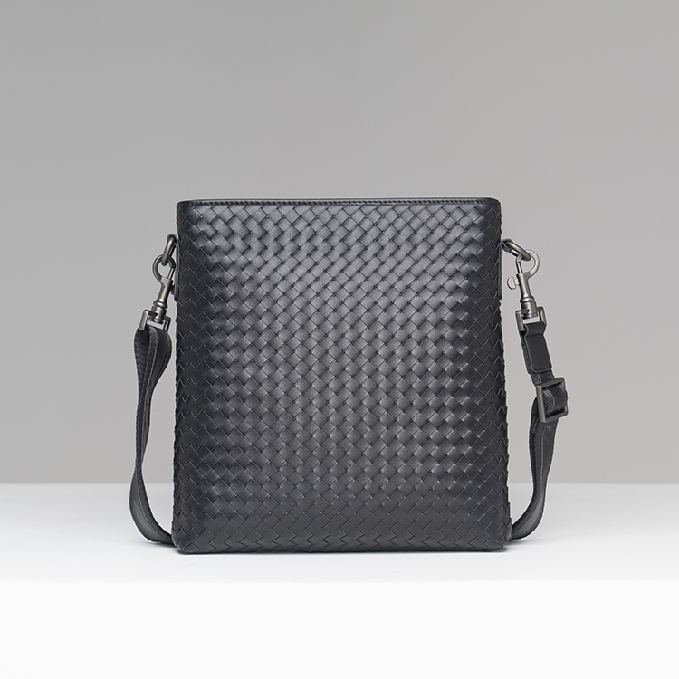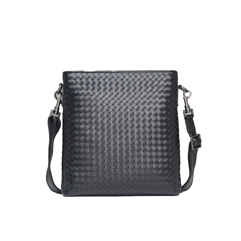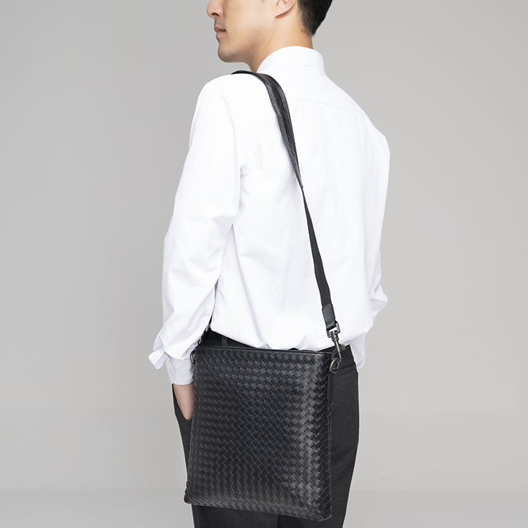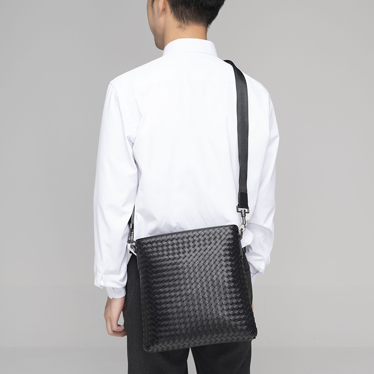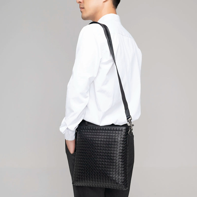 X&BV真皮男包时尚单肩包潮牌韩版竖款编织新款休闲斜跨包男小背包