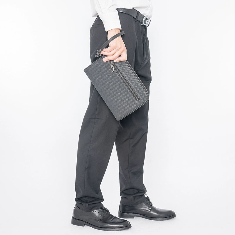 X&BV真皮男士手包商务休闲大容量信封包编织新款夹包潮牌手拿包男