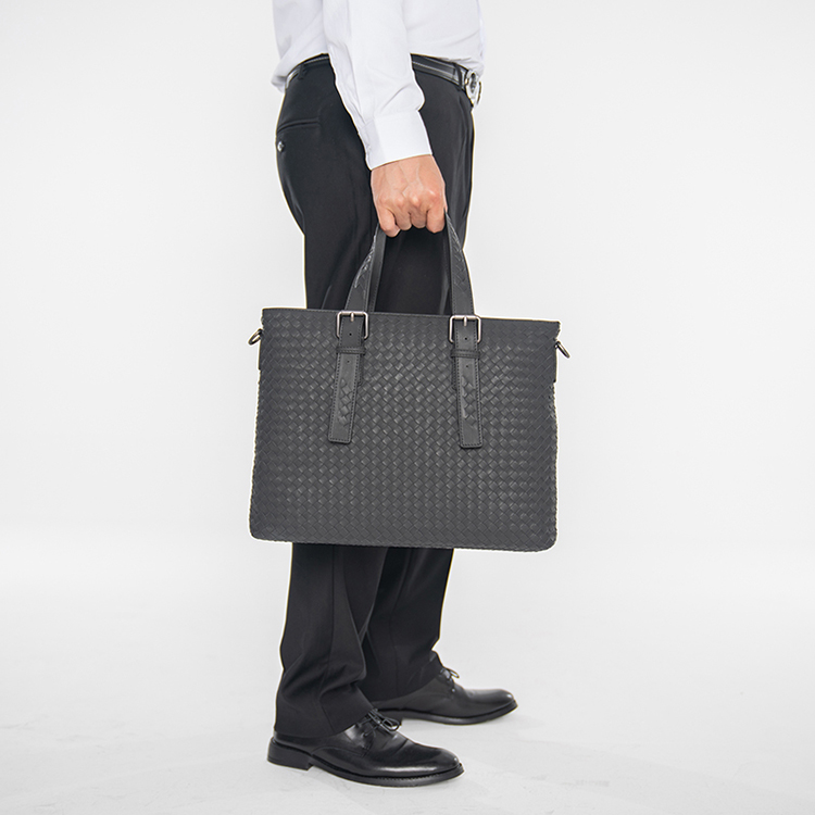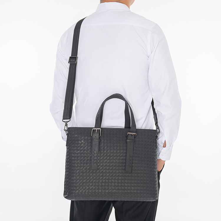 X&BV真皮男士手提包横款编织单肩斜挎包男商务休闲电脑包公文包男