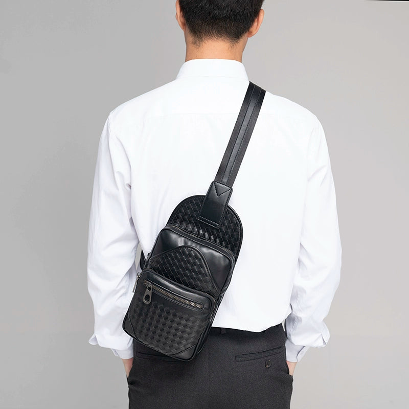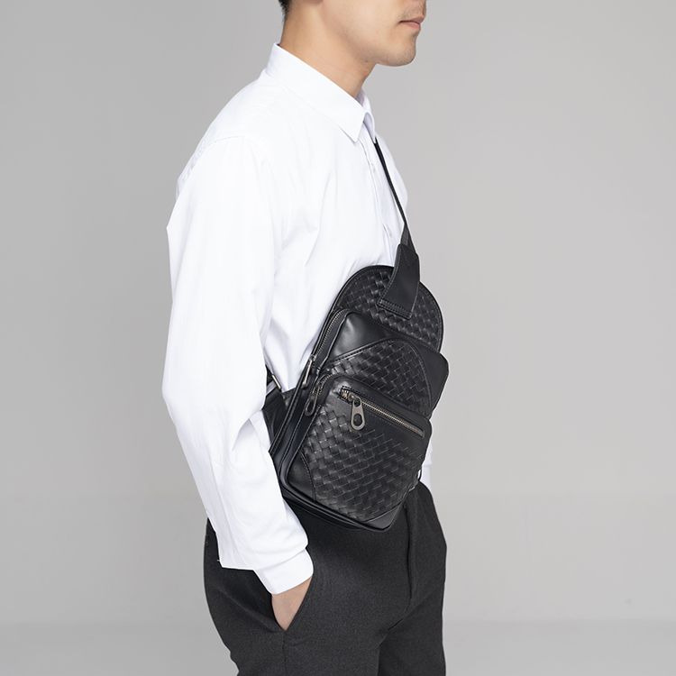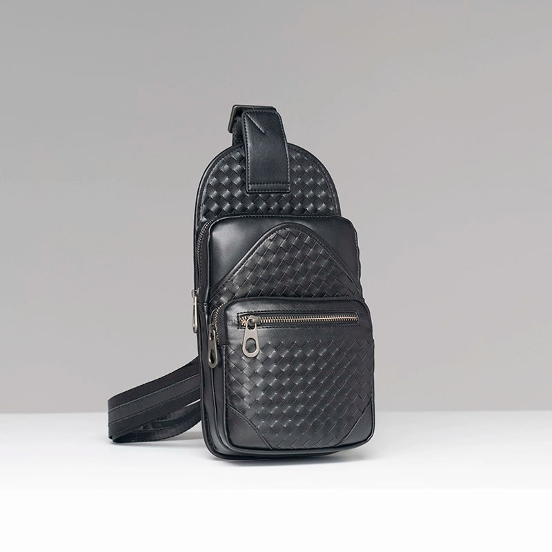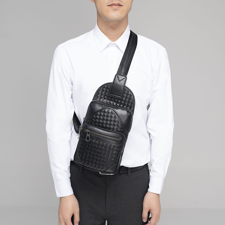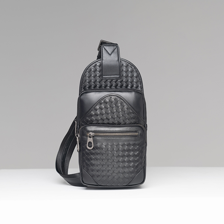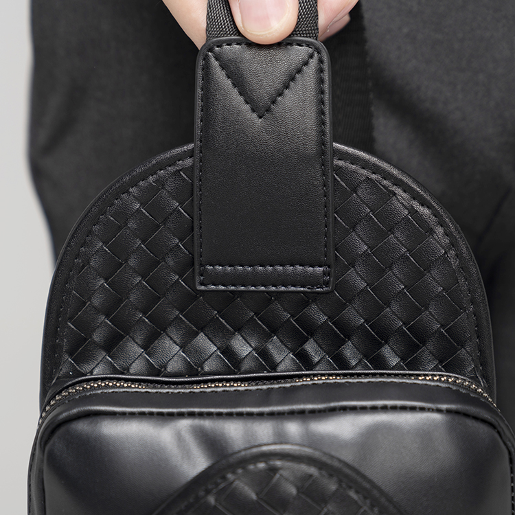 X&BV胸包男真皮休闲青年潮男背包编织单肩斜挎包男士新款多功能包