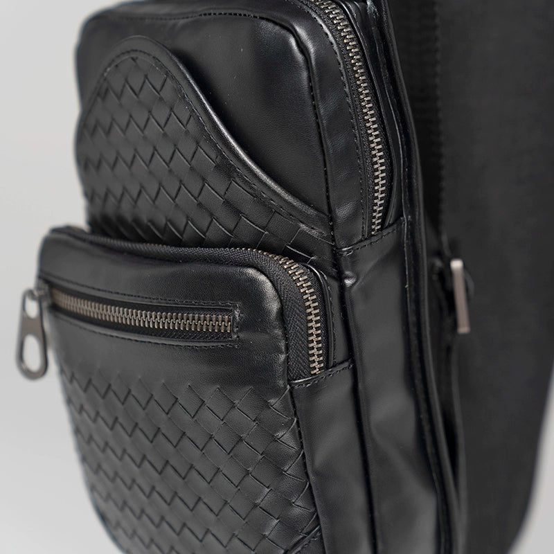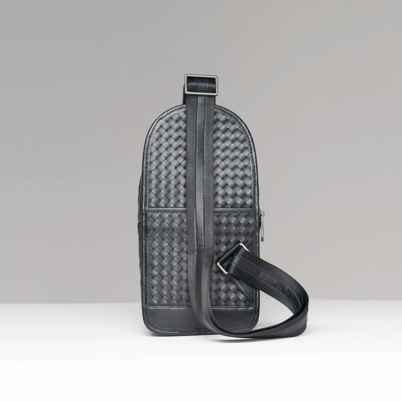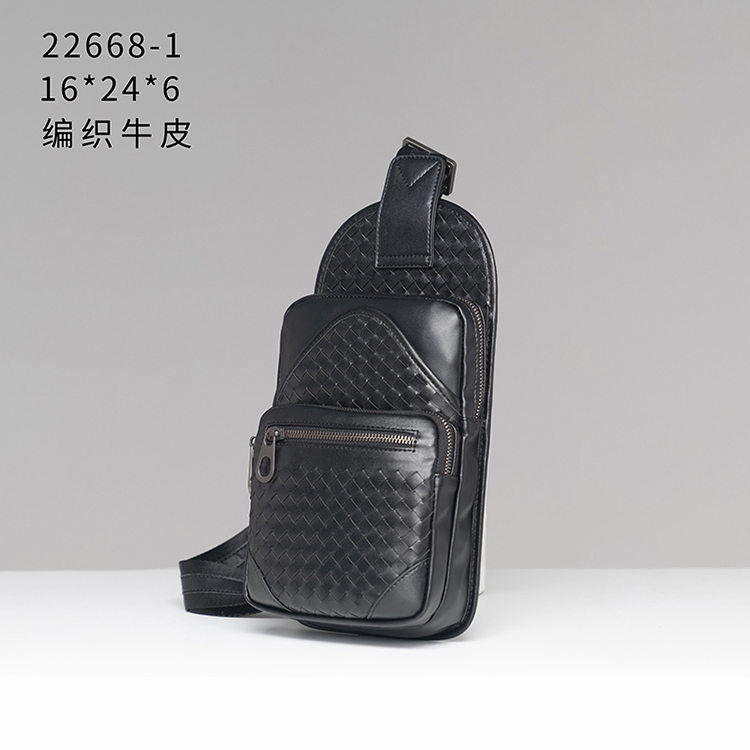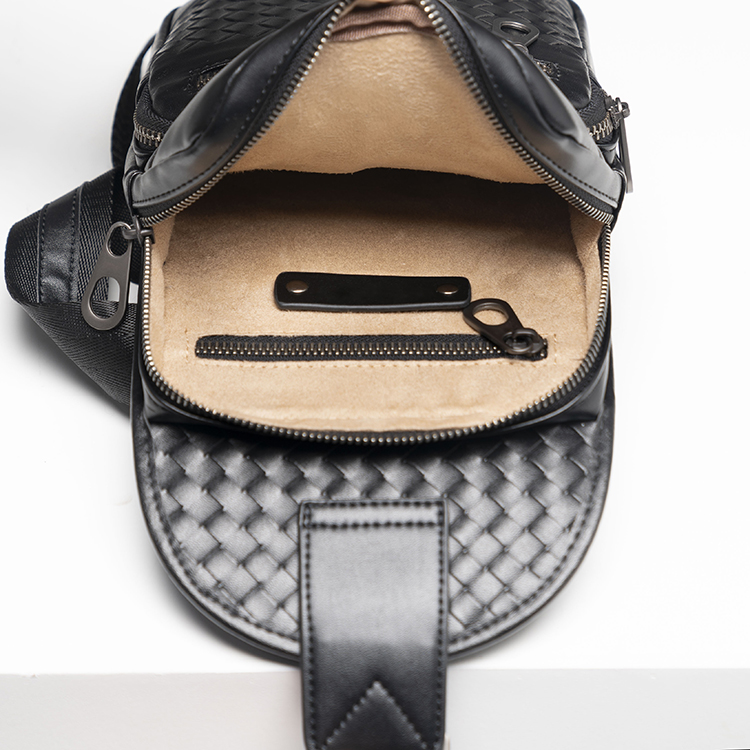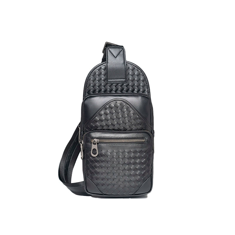 X&BV胸包男真皮休闲青年潮男背包编织单肩斜挎包男士新款多功能包