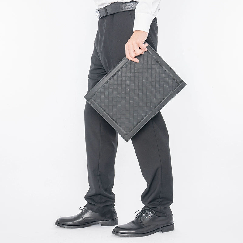 X&BV超薄特大号编织手拿包男真皮休闲大容量时尚平板ipad包手包男
